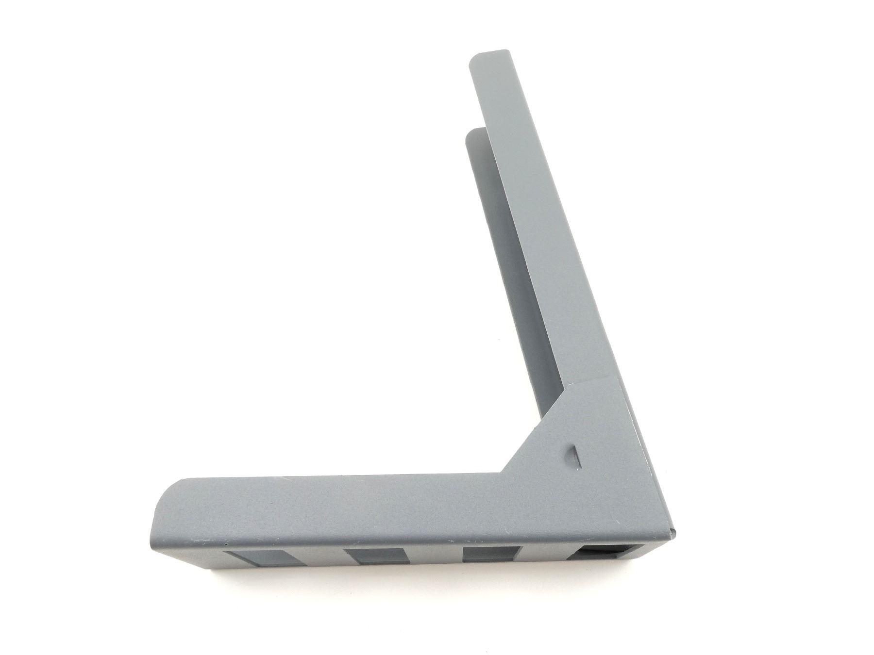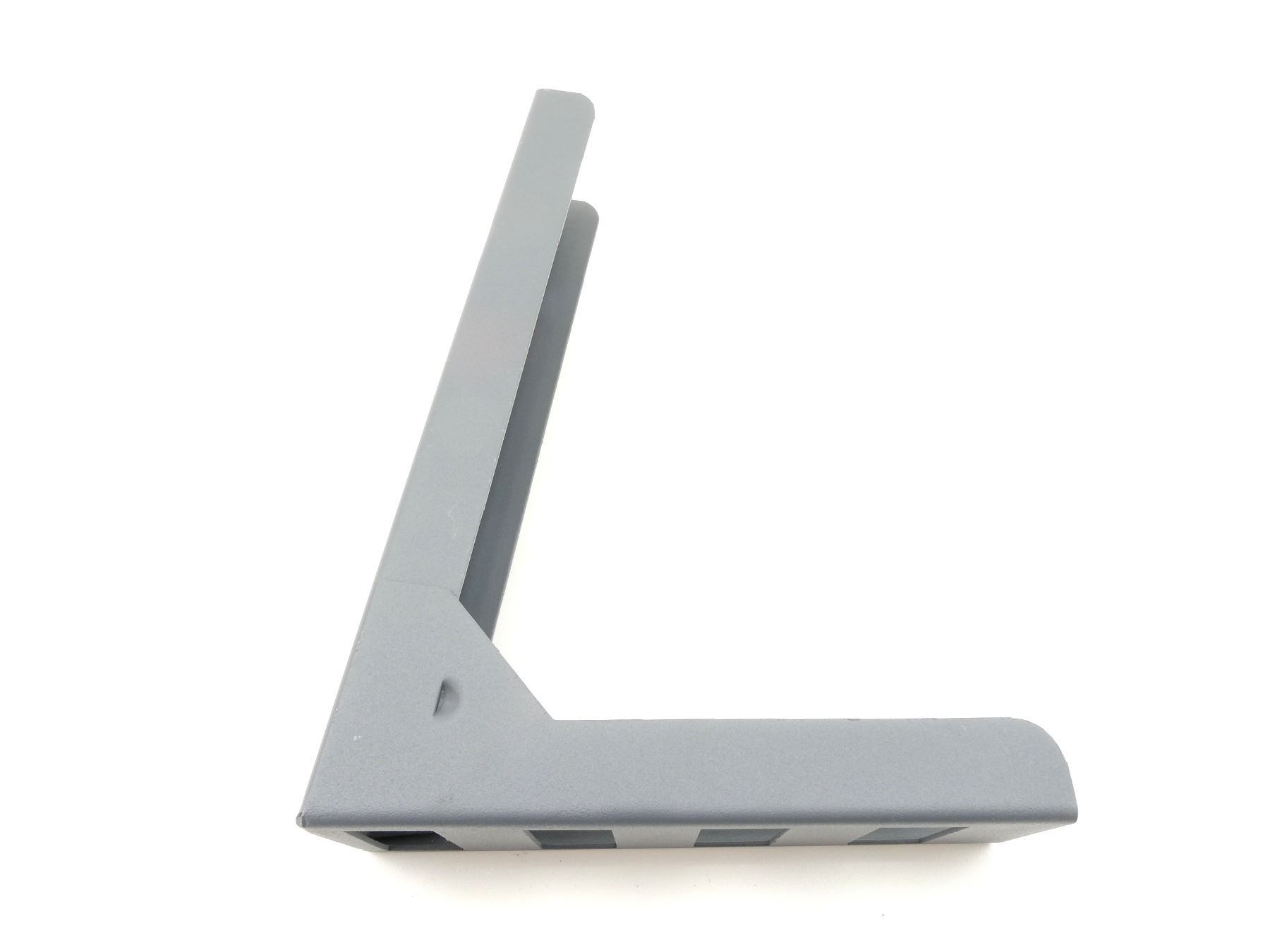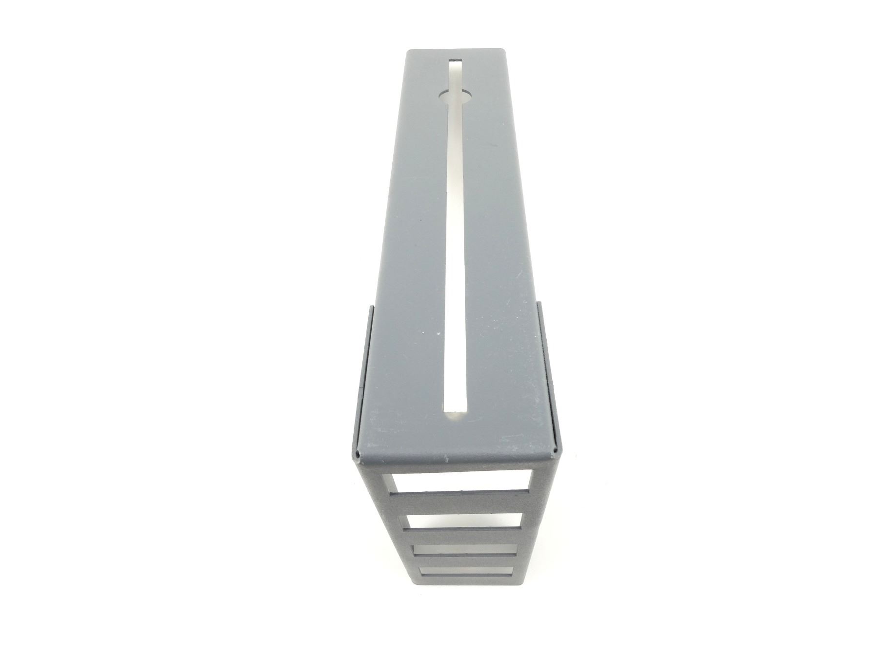 (1) GREY METAL SINGLE RIFLE STOCK SHELF, MISSING RUBBER PIECES, APPROX. 12" X 8.75". SEE PHOTOS.