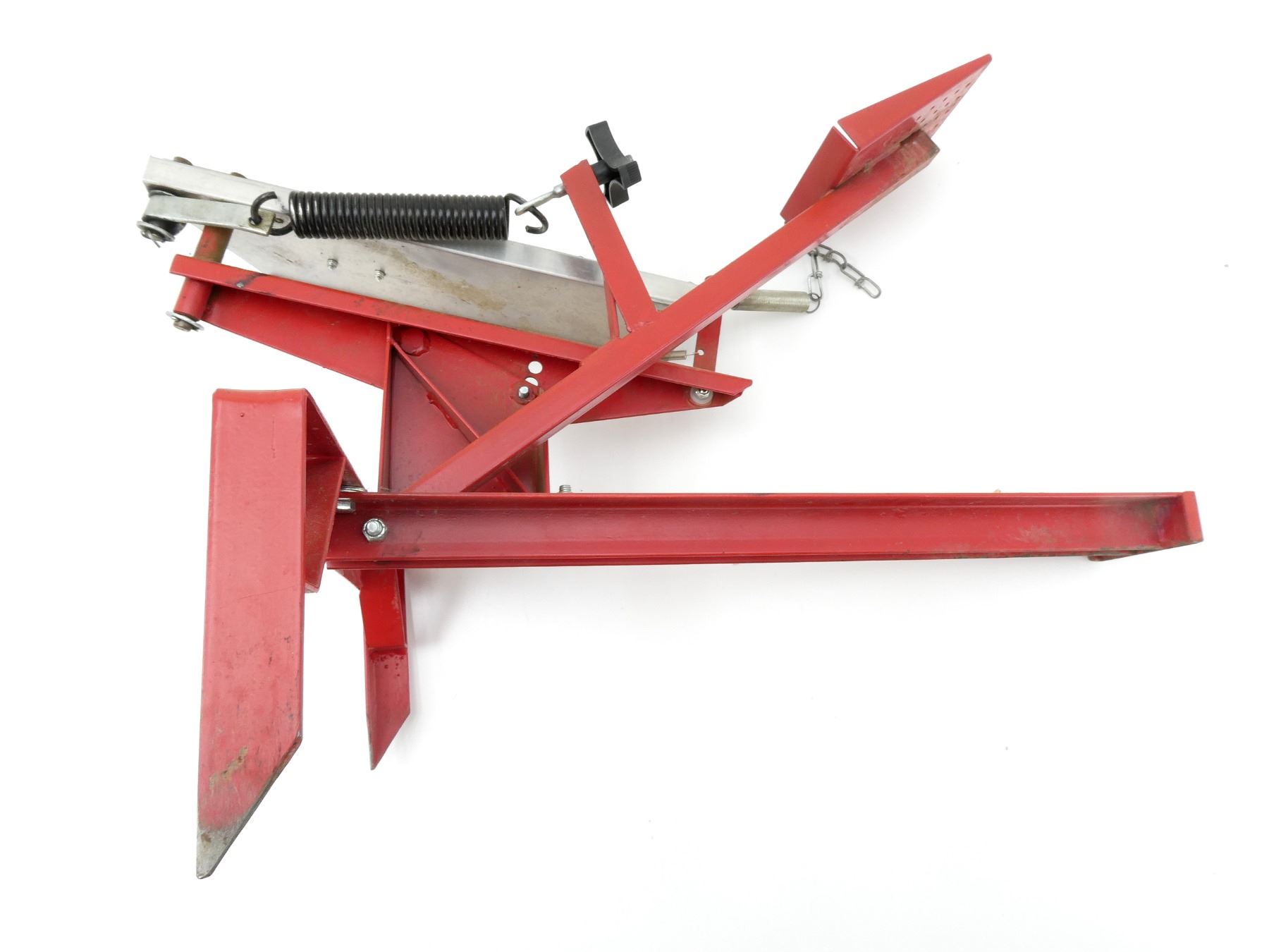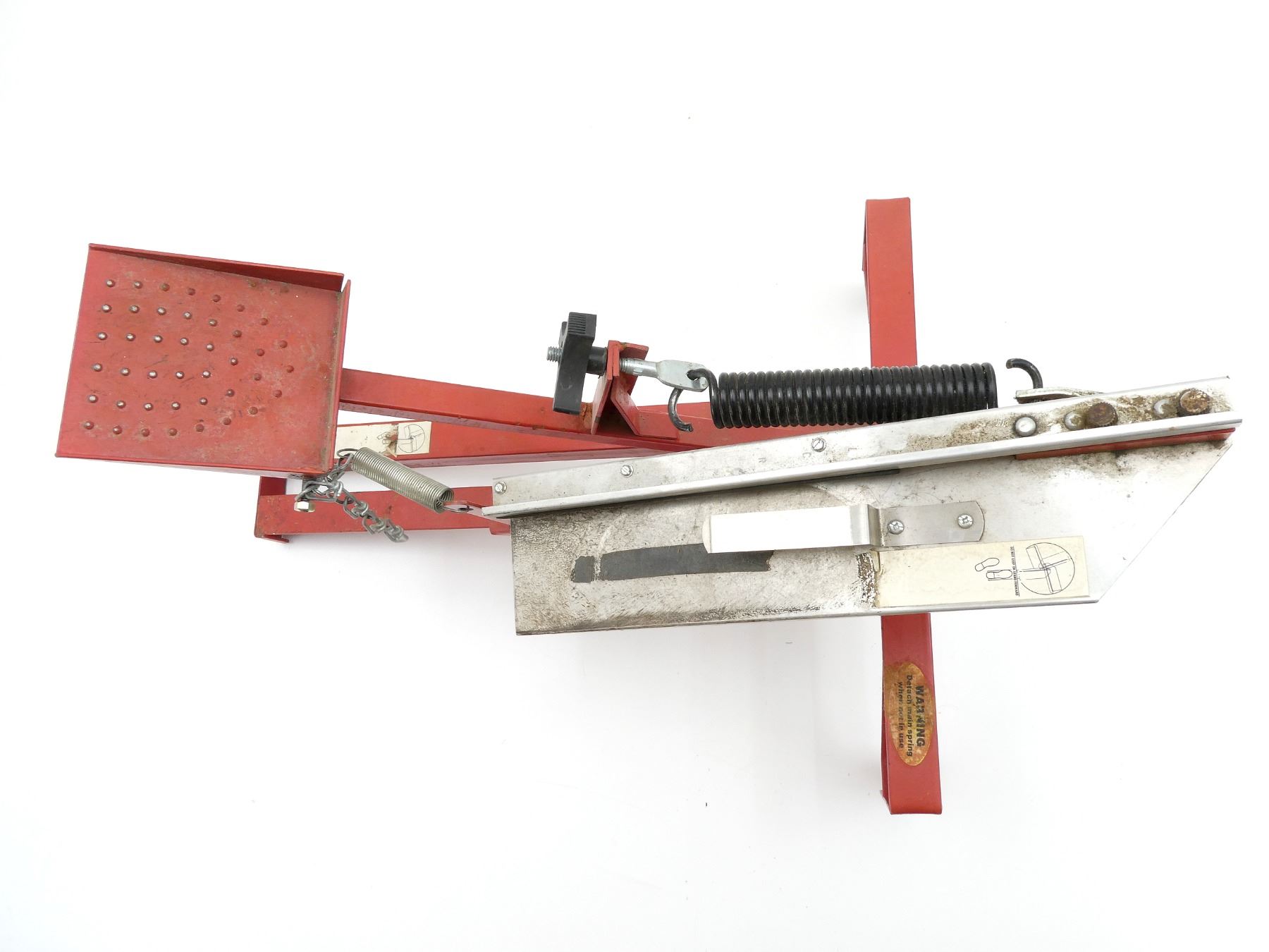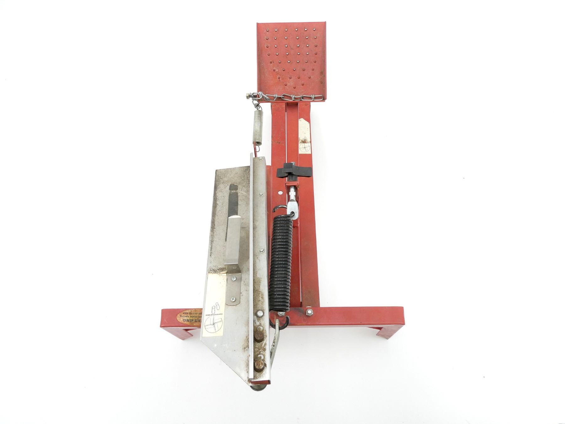 (1) UNKNOWN MFG, METAL FRAME WITH SPRING-LOADED THROWING ARM, OVERALL LENGTH APPROX. 20" X 21.5" X 26". SEE PHOTOS.