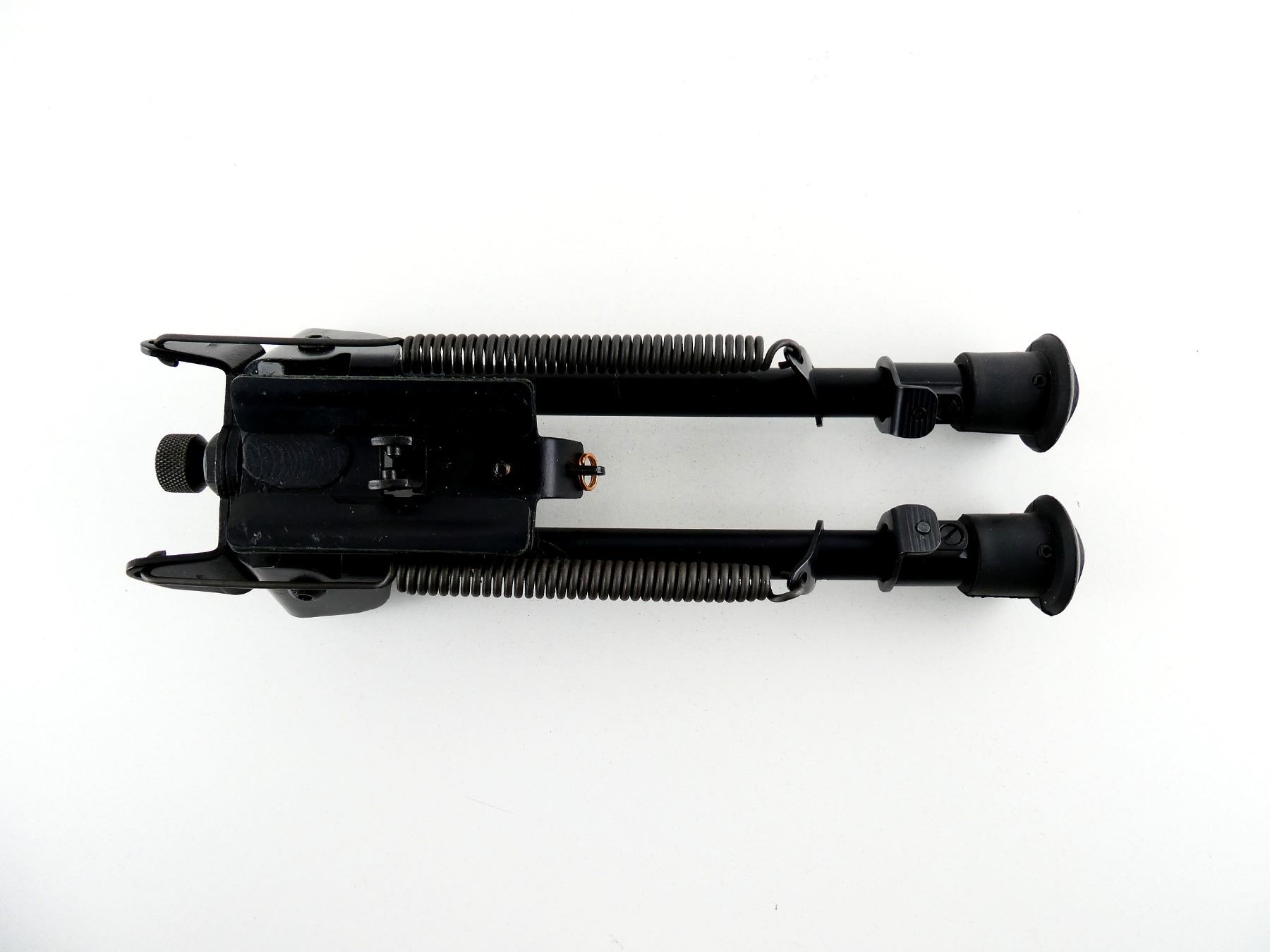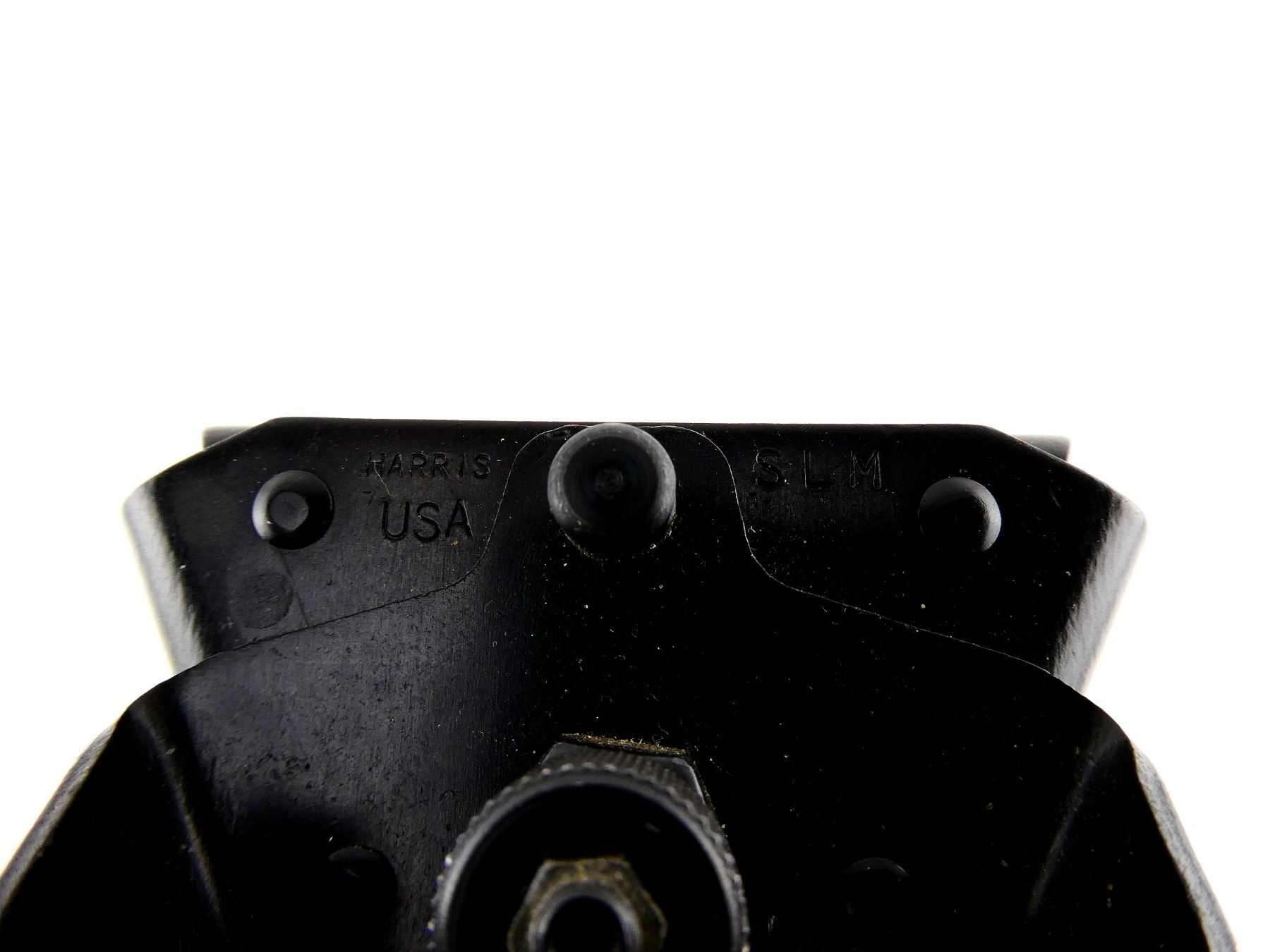 (1) BLACK METAL CONSTRUCTION, MARKED "HARRIS", "SLM", ETC., HARD RUBBER FEET, ADJUSTABLE LEGS, ADJUSTS FROM APPROX. 9" TO 13". SEE PHOTOS.