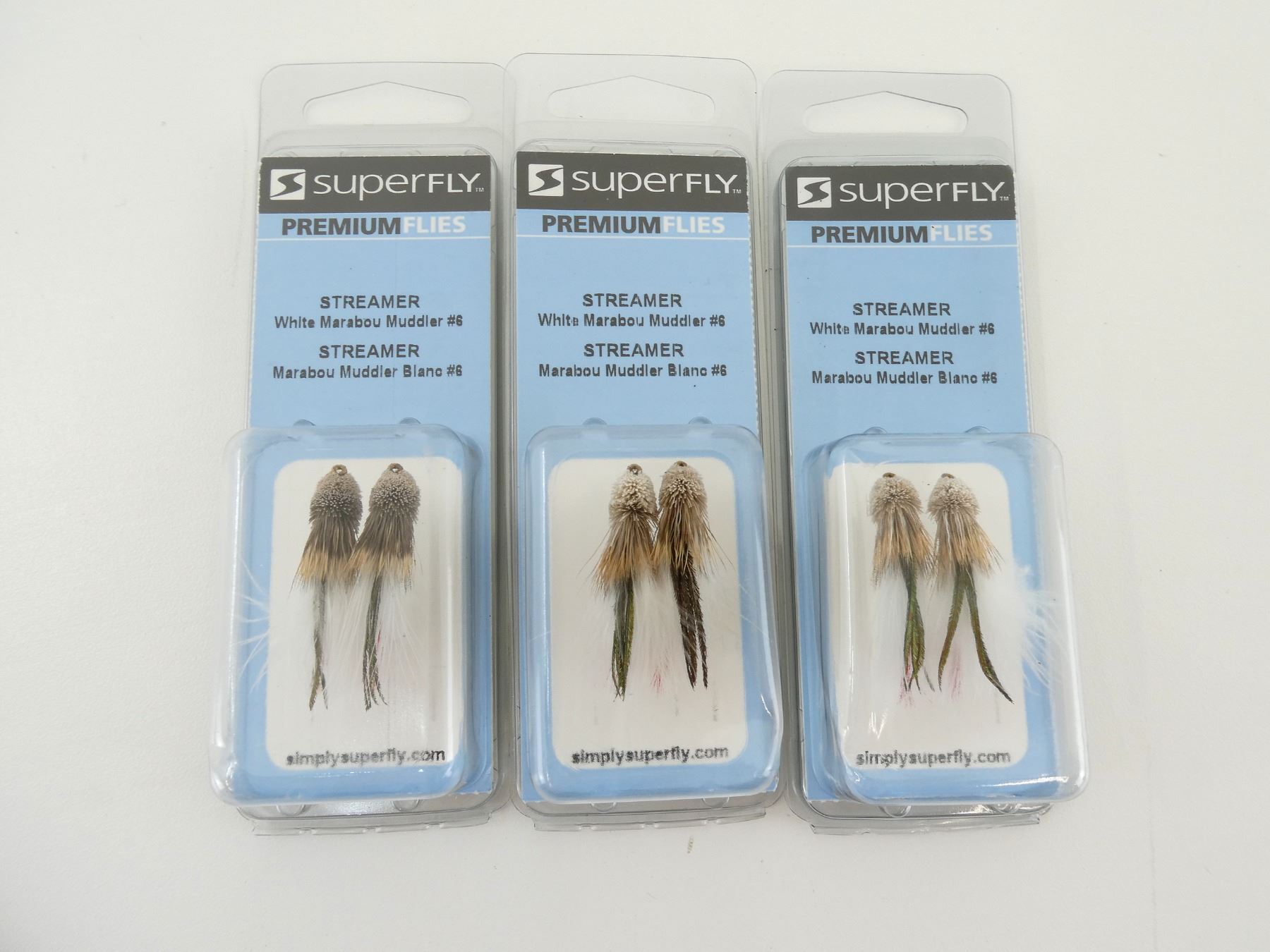 Lot 44022 SUPERFLY PREMIUM FLIES WHITE MARABOU MUDDLER #6 STREAMERS LOT