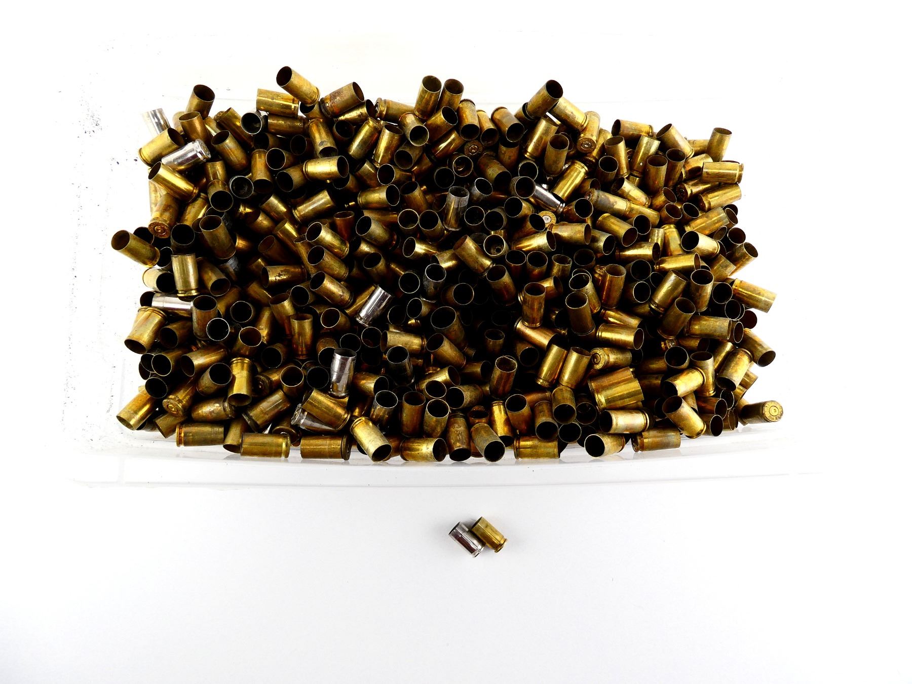 LOT INCLUDES; APPROX. 12.5 LBS NON-PRIMED CASES, VARIOUS CALIBERS INCLUDING; 9MM LUGER, .38 S&W, .45 AUTO, .30 CARBINE, 7.62X39MM, ETC.