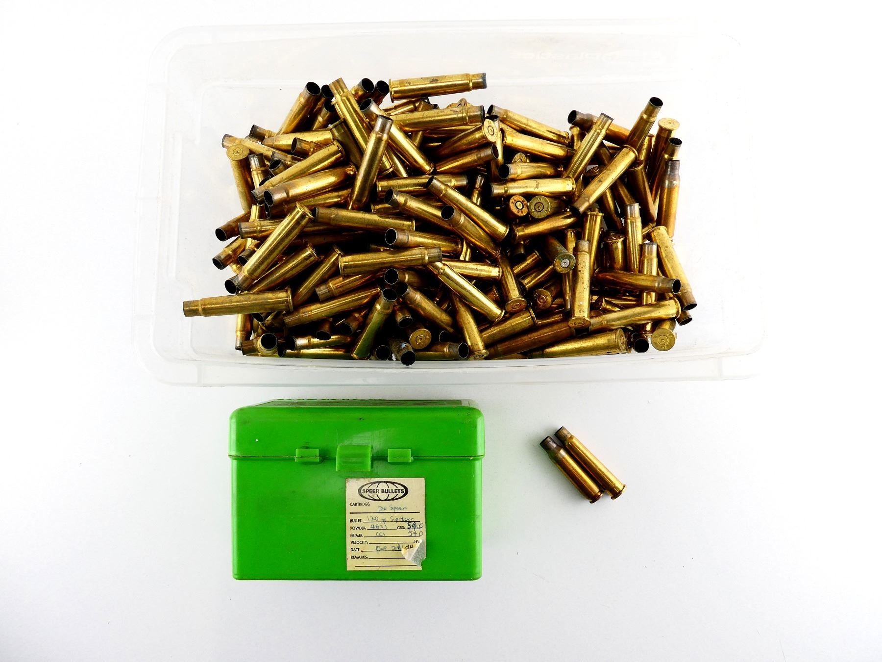 LOT INCLUDES; APPROX. 7.1 LBS NON-PRIMED BRASS, (1) PLASTIC AMMO BOX.