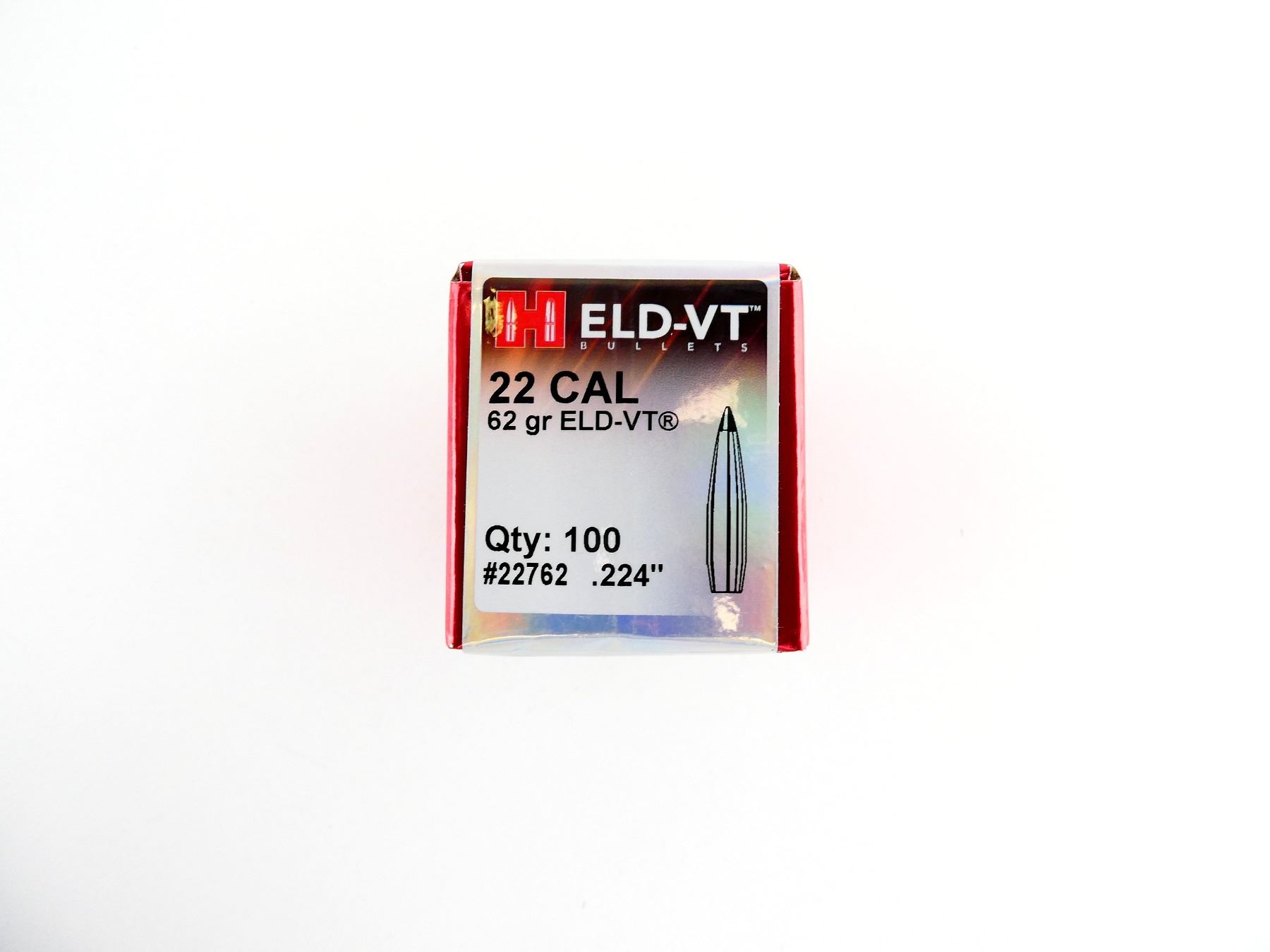 LOT INCLUDES; APPROX. (100) BULLETS, APPROX. DIA .224", 62 GRNS (STATED ON BOX NOT CONFIRMED) ELD-VT, UNOPENED.