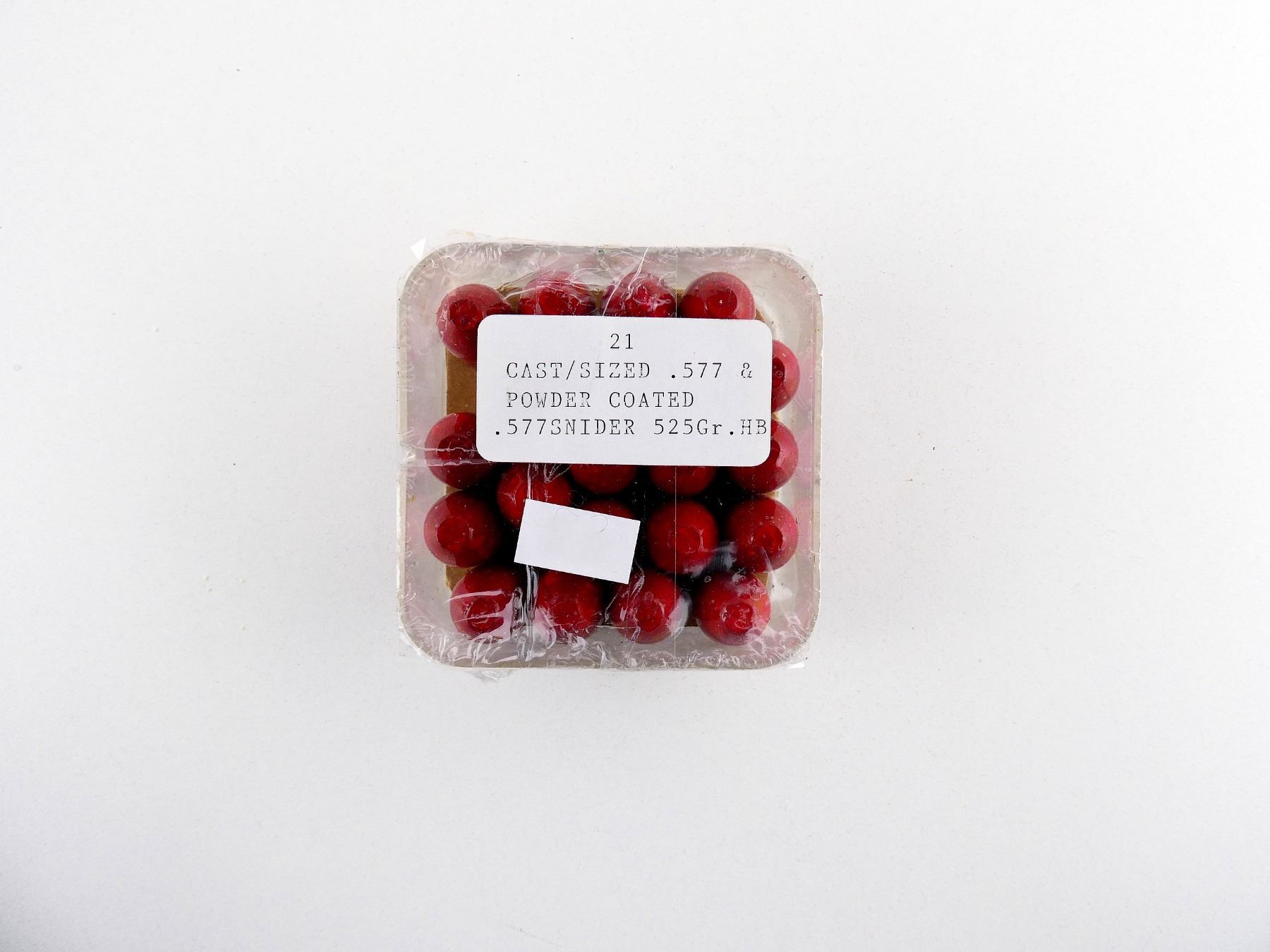 LOT INCLUDES; APPROX. (21) BULLETS; APPROX. DIA .578", CONSIGNOR STATES; "525 GRNS HB SIZED POWDER COATED", NOT CONFIRMED.