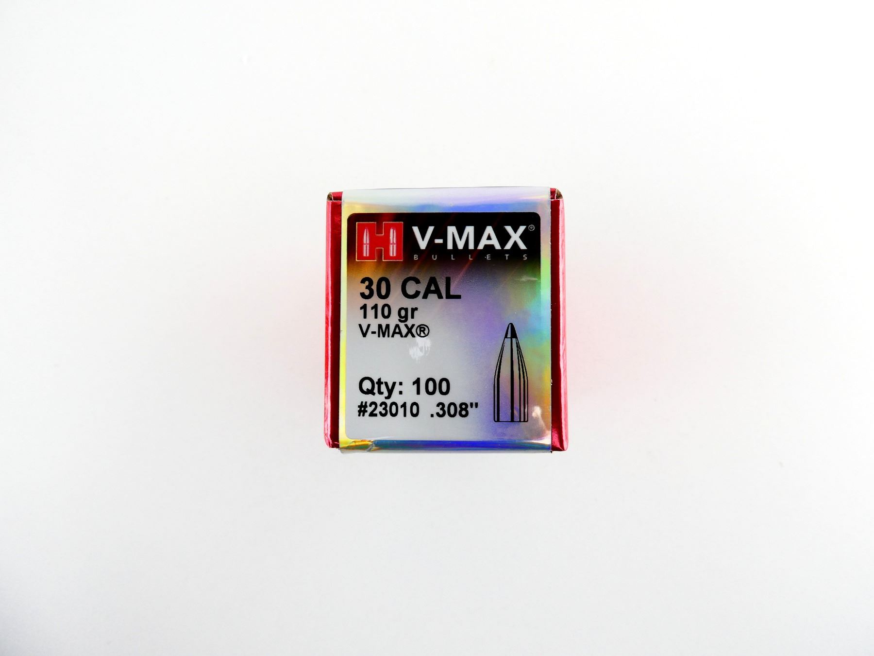 LOT INCLUDES; APPROX. (100) BULLETS, APPROX. DIA .308", 110 GRNS (STATED ON BOX NOT CONFIRMED) V-MAX, UNOPENED.