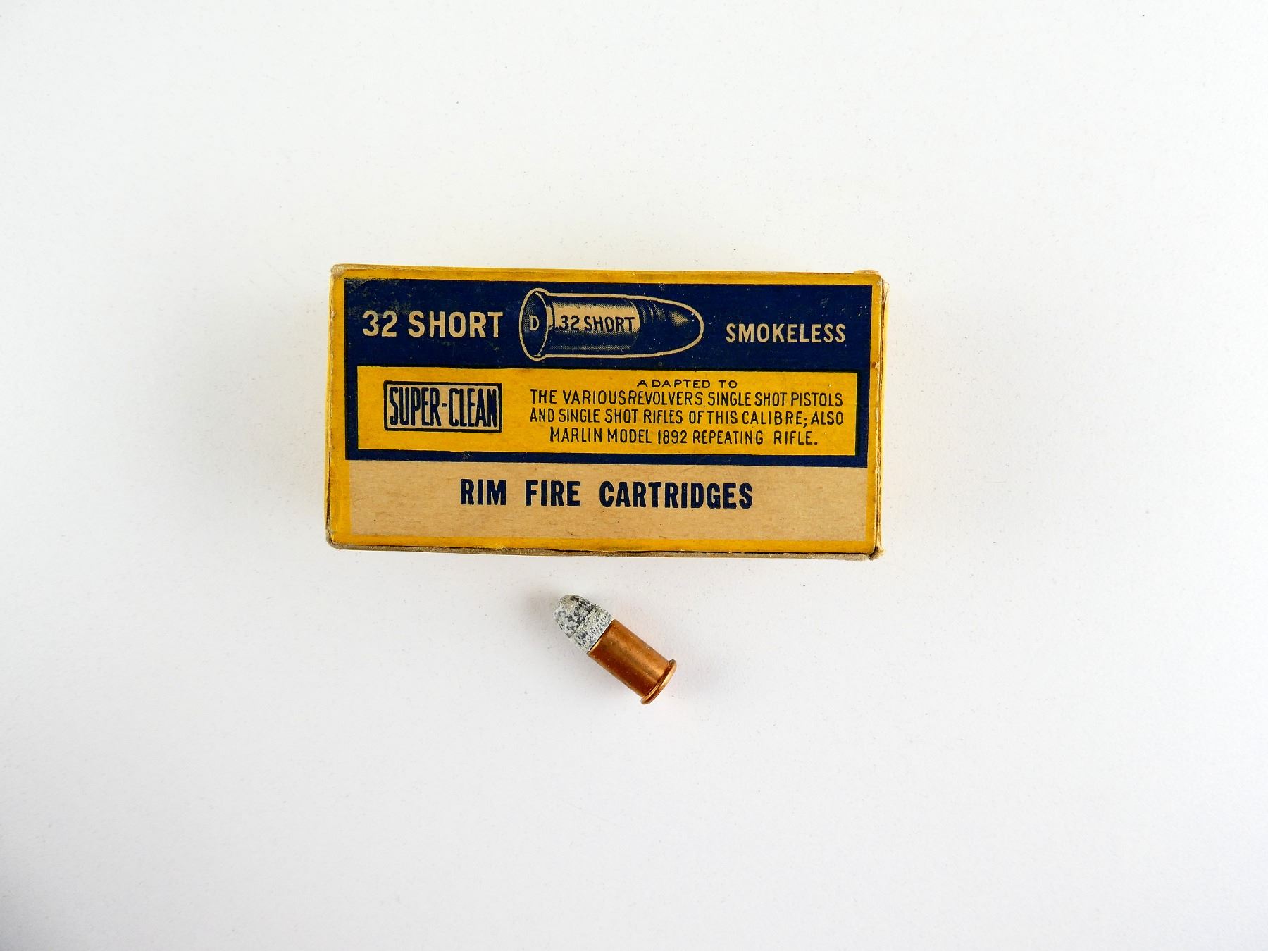 LOT INCLUDES; APPROX. (50) RNDS, 80 GRNS (STATED ON BOX NOT CONFIRMED), BULLET, GREASED, SUPER-CLEAN, SMOKELESS, IN ORIGINAL COLLECTIBLE BOX, SHOWS SOME WEAR, SEE PHOTOS.