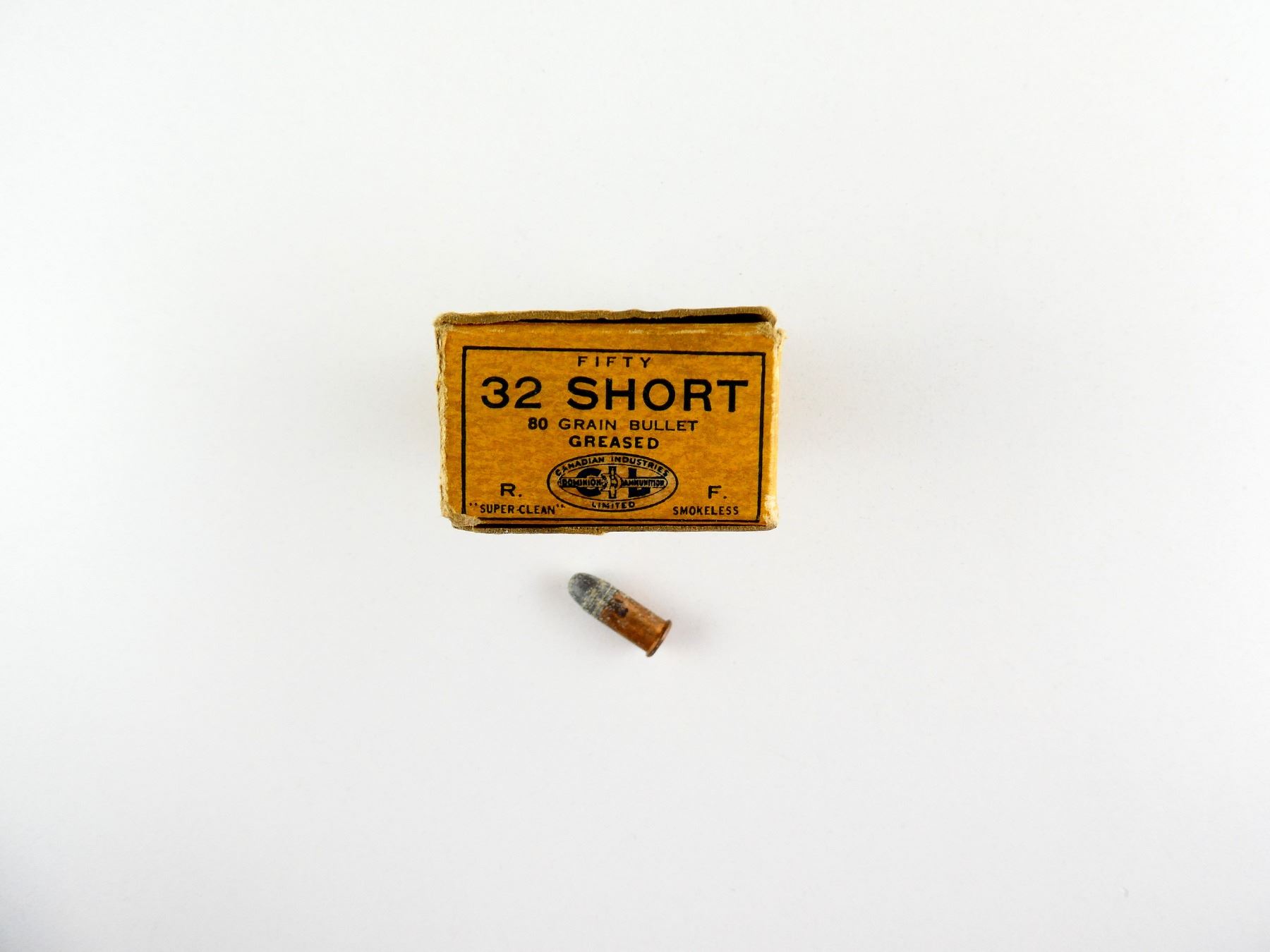 LOT INCLUDES; APPROX. (31) RNDS, 80 GRNS (STATED ON BOX NOT CONFIRMED), BULLET, GREASED, SUPER-CLEAN, SMOKELESS, IN ORIGINAL COLLECTIBLE BOX, SHOWS SOME WEAR, SEE PHOTOS.