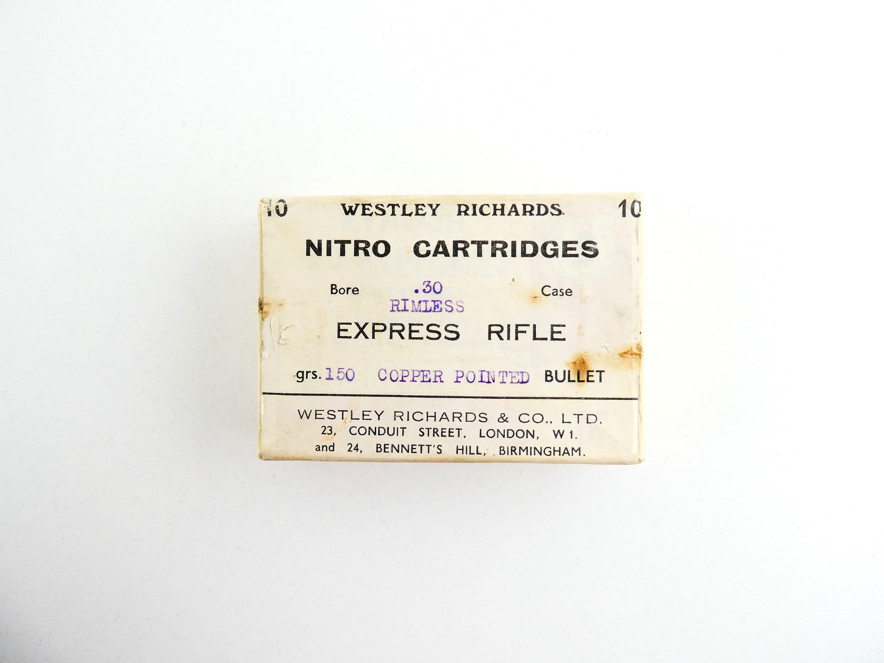 COLLECTIBLE WESTLEY RICHARDS .30 RIMLESS EXPRESS AMMO LOT