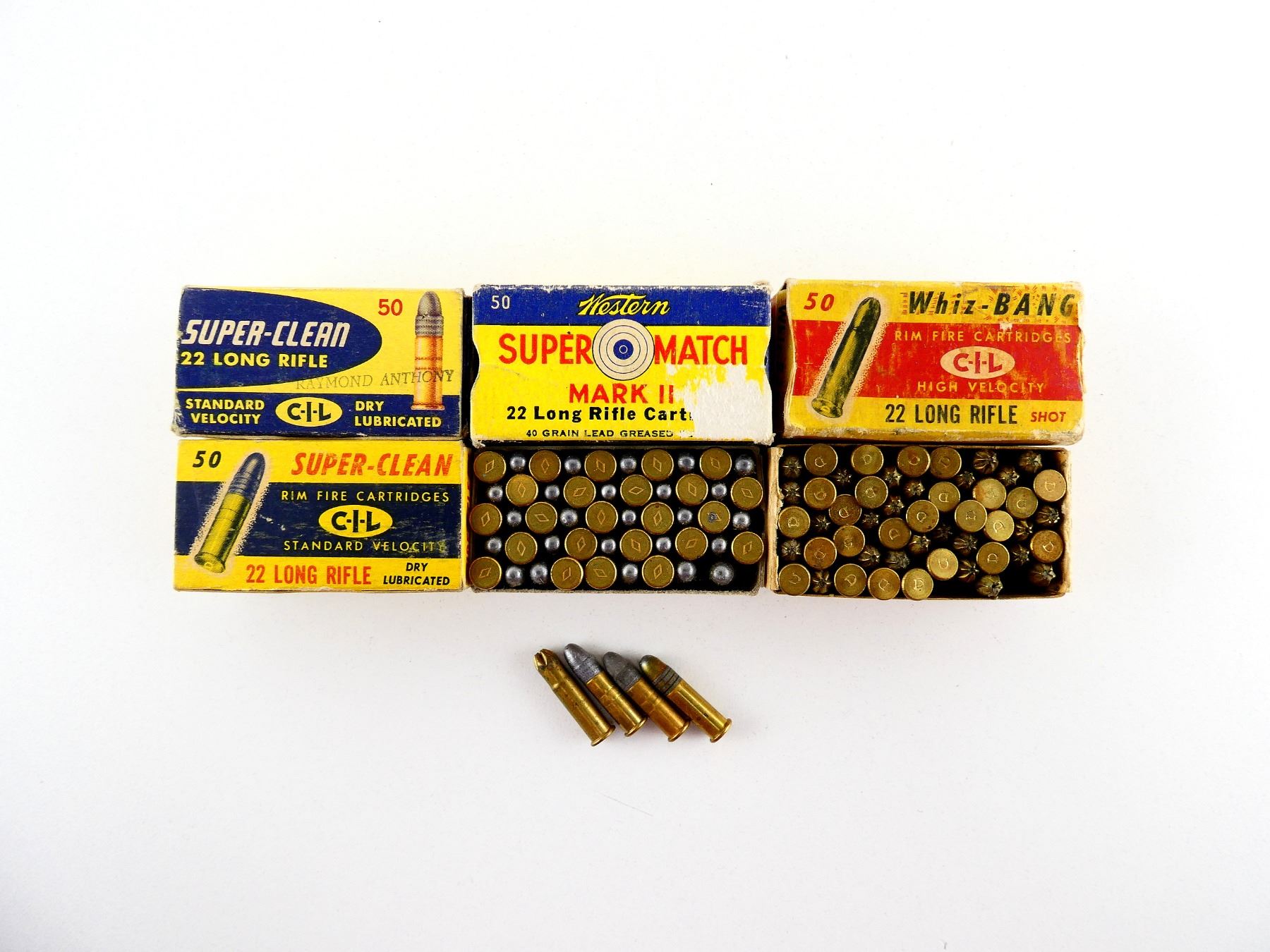 LOT INCLUDES; APPROX. (200) RNDS, VARIOUS MANUFACTURERS INCLUDING; WESTERN, CIL, ETC., IN ORIGINAL COLLECTIBLE BOXES, SHOWS SOME WEAR, SEE PHOTOS.