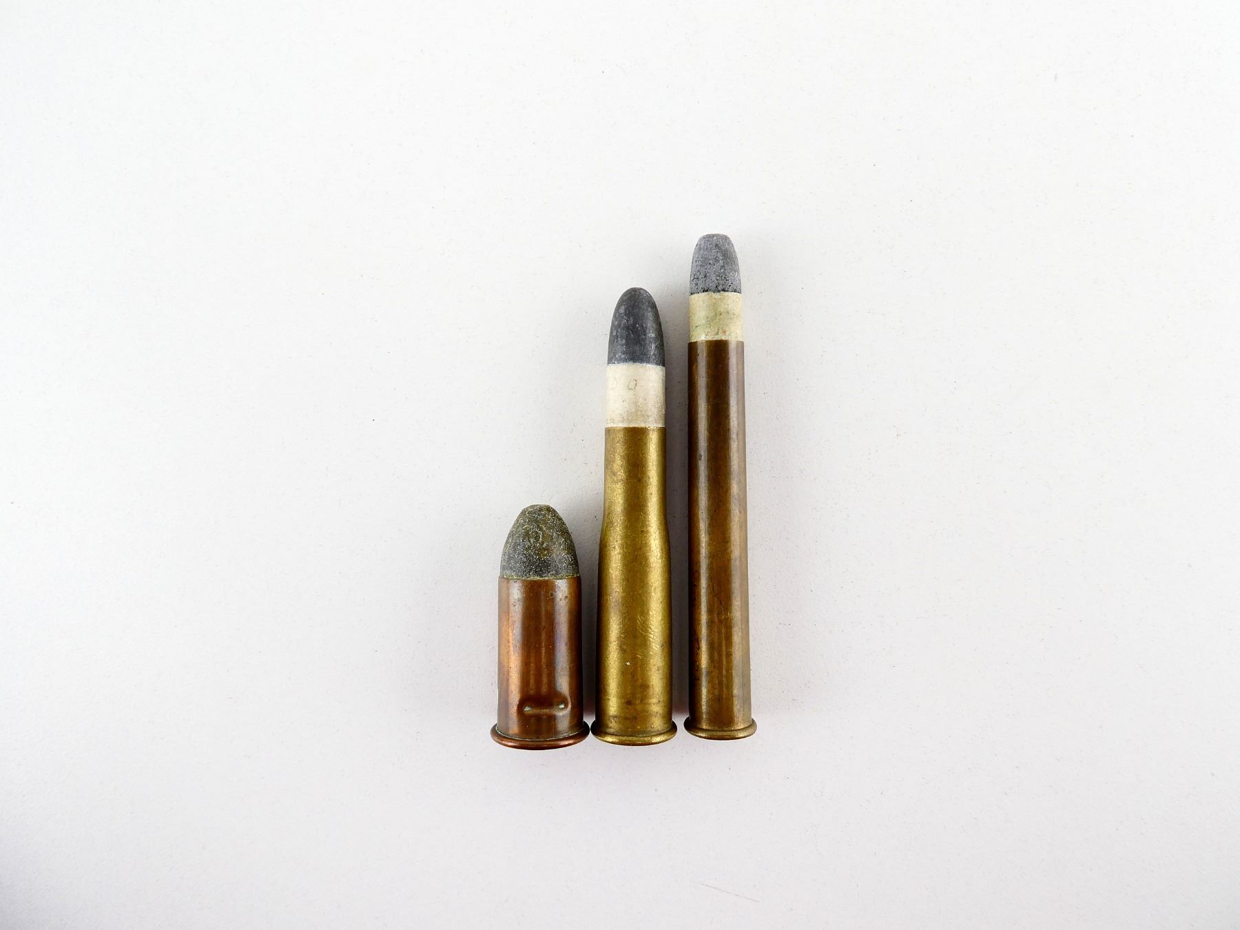 LOT INCLUDES; APPROX. (3) RNDS, VARIOUS CALIBERS INCLUDING; .58 MUSKET LEAD RF, .44-95 PEABODY, POSSIBLY .40-85 (40-90) BALLARD, SEE PHOTOS.