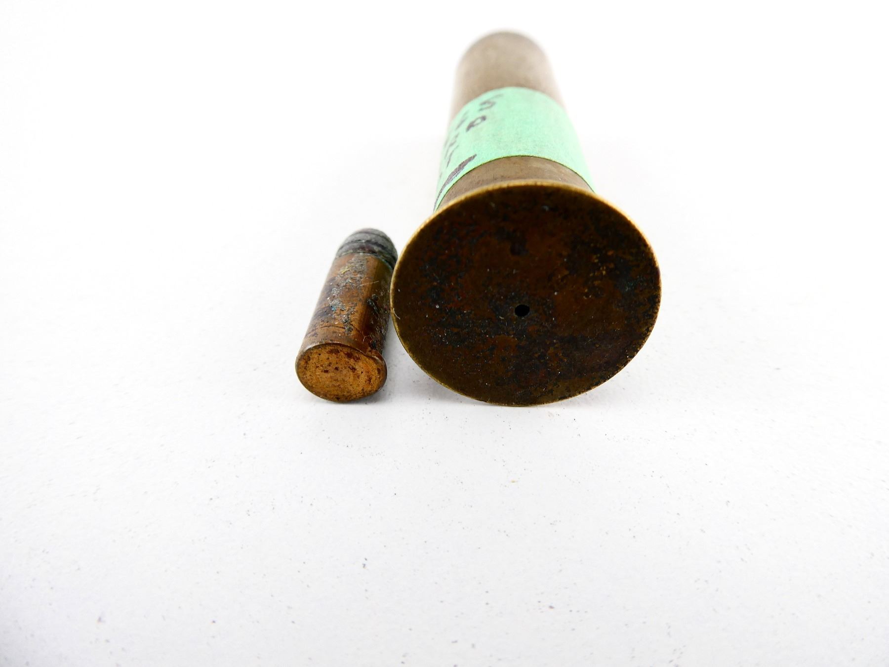 LOT INCLUDES; (1) RND, (1) BRASS SHOT SHELL HULL, SEE PHOTOS.