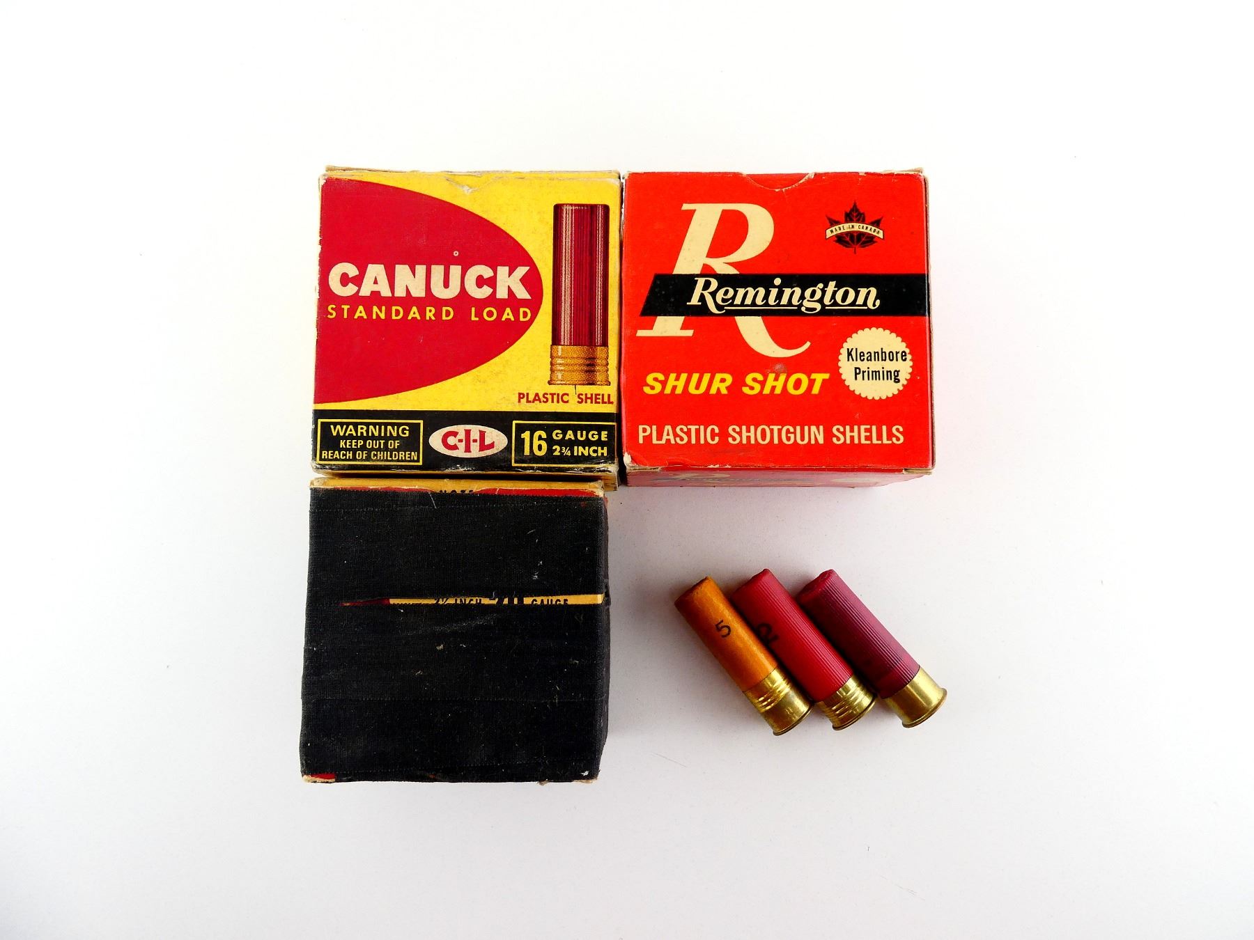 Lot 10066 COLLECTIBLE ASSORTED 16 GAUGE 2 1/2" / 2 3/4" AND 20 GAUGE 2 1/2" SHOT SHELL AMMO LOT