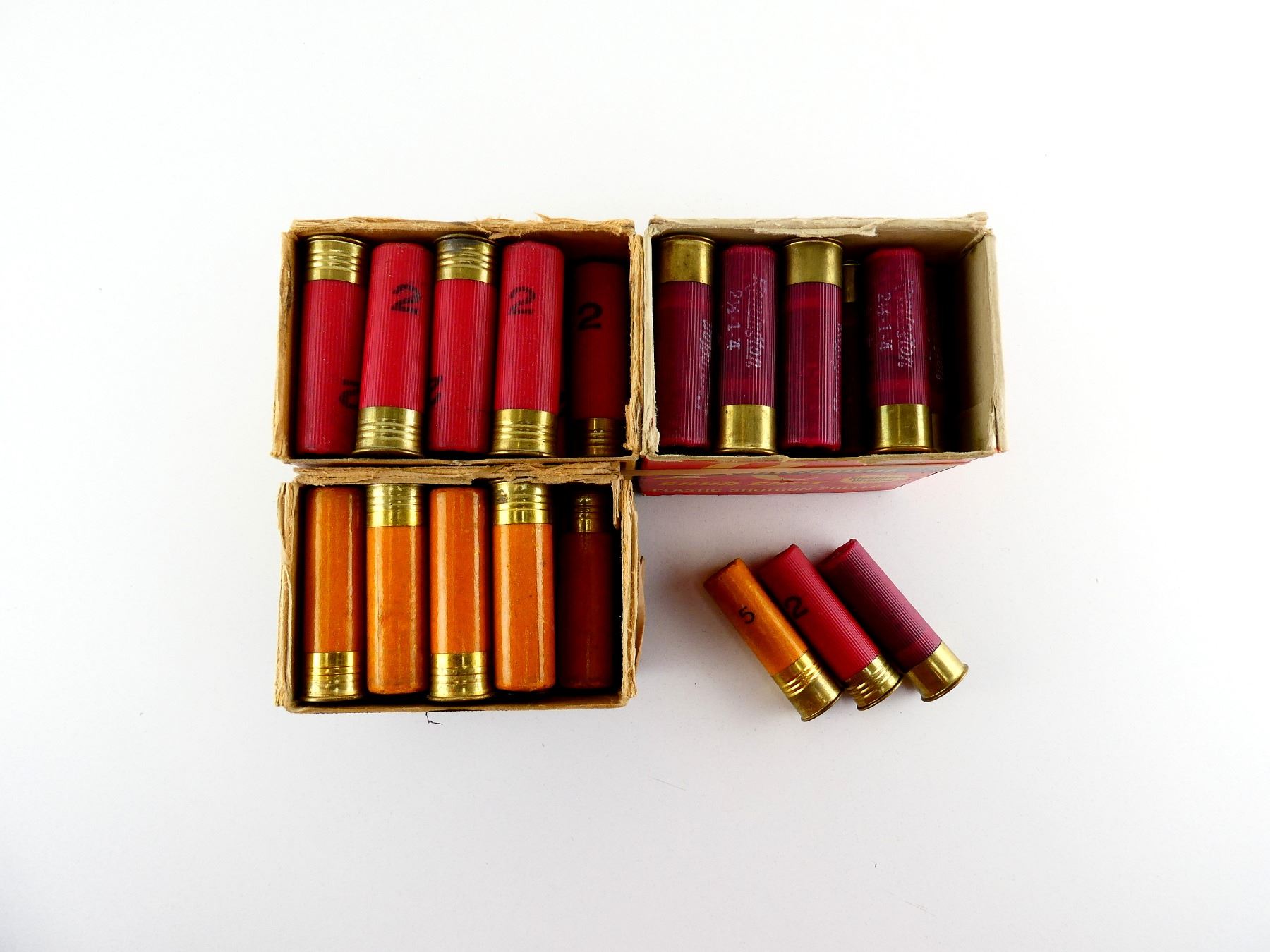 LOT INCLUDES; APPROX. (75) RNDS, VARIOUS MANUFACTURERS INCLUDING; CIL, REMINGTON, ASSORTED SHOT SIZES; #2, #4, #5, ETC., IN ORIGINAL COLLECTIBLE BOXES, SHOWS SOME WEAR, SEE PHOTOS.