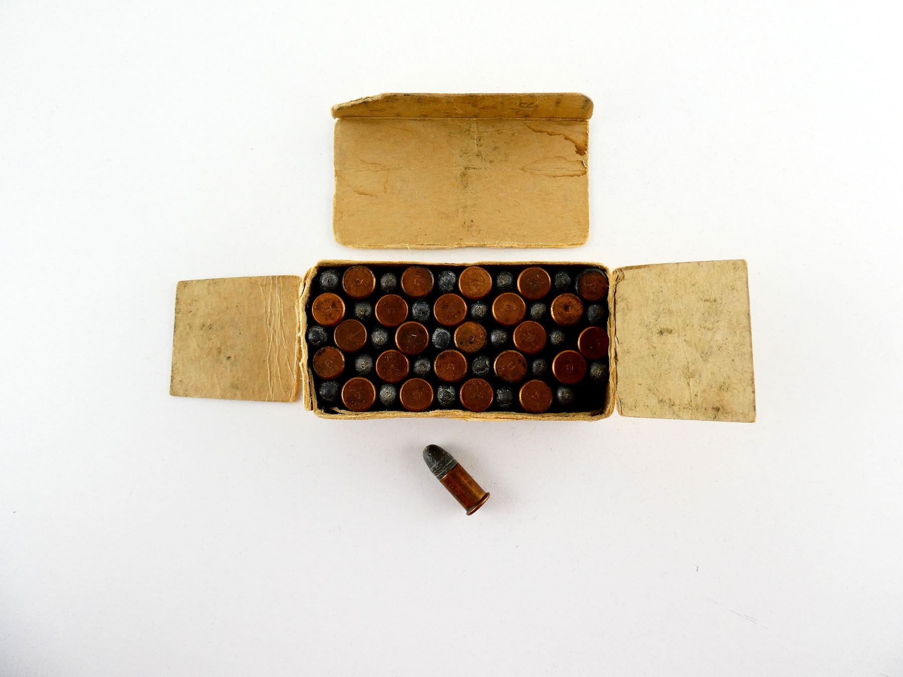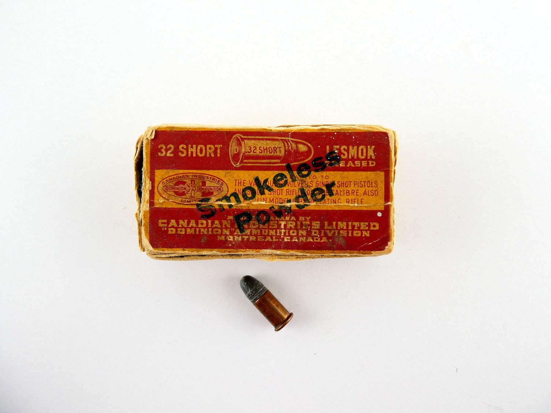 LOT INCLUDES; APPROX. (50) RNDS, LEAD, SMOKELESS POWDER, LESMOK GREASED, IN ORIGINAL COLLECTIBLE BOX, SHOWS SOME WEAR, SEE PHOTOS.