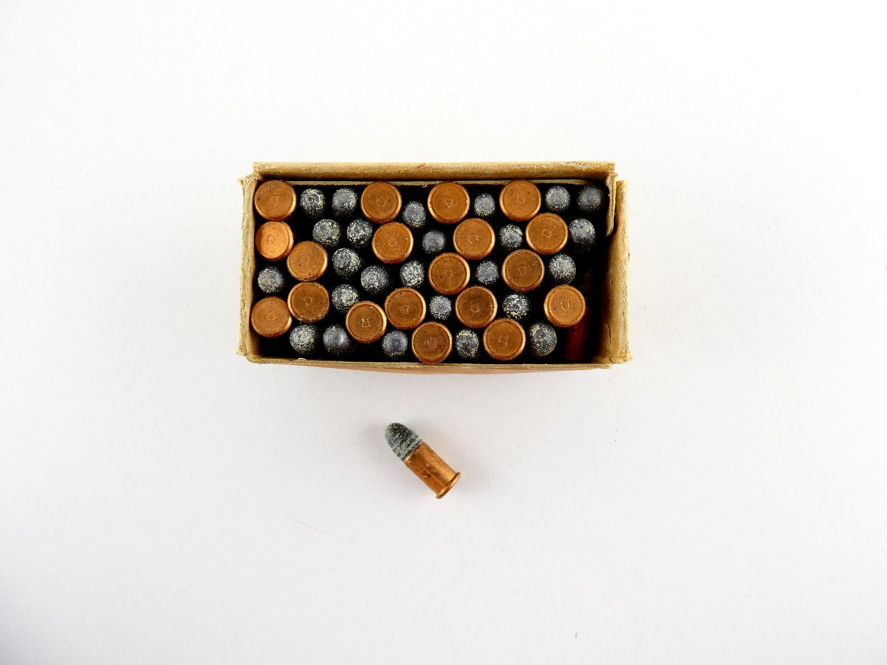 LOT INCLUDES; APPROX. (46) RNDS, 80 GRNS (STATED ON BOX NOT CONFIRMED), BULLET, GREASED, SMOKELESS , IN ORIGINAL COLLECTIBLE BOX, SHOWS SOME WEAR, SEE PHOTOS.