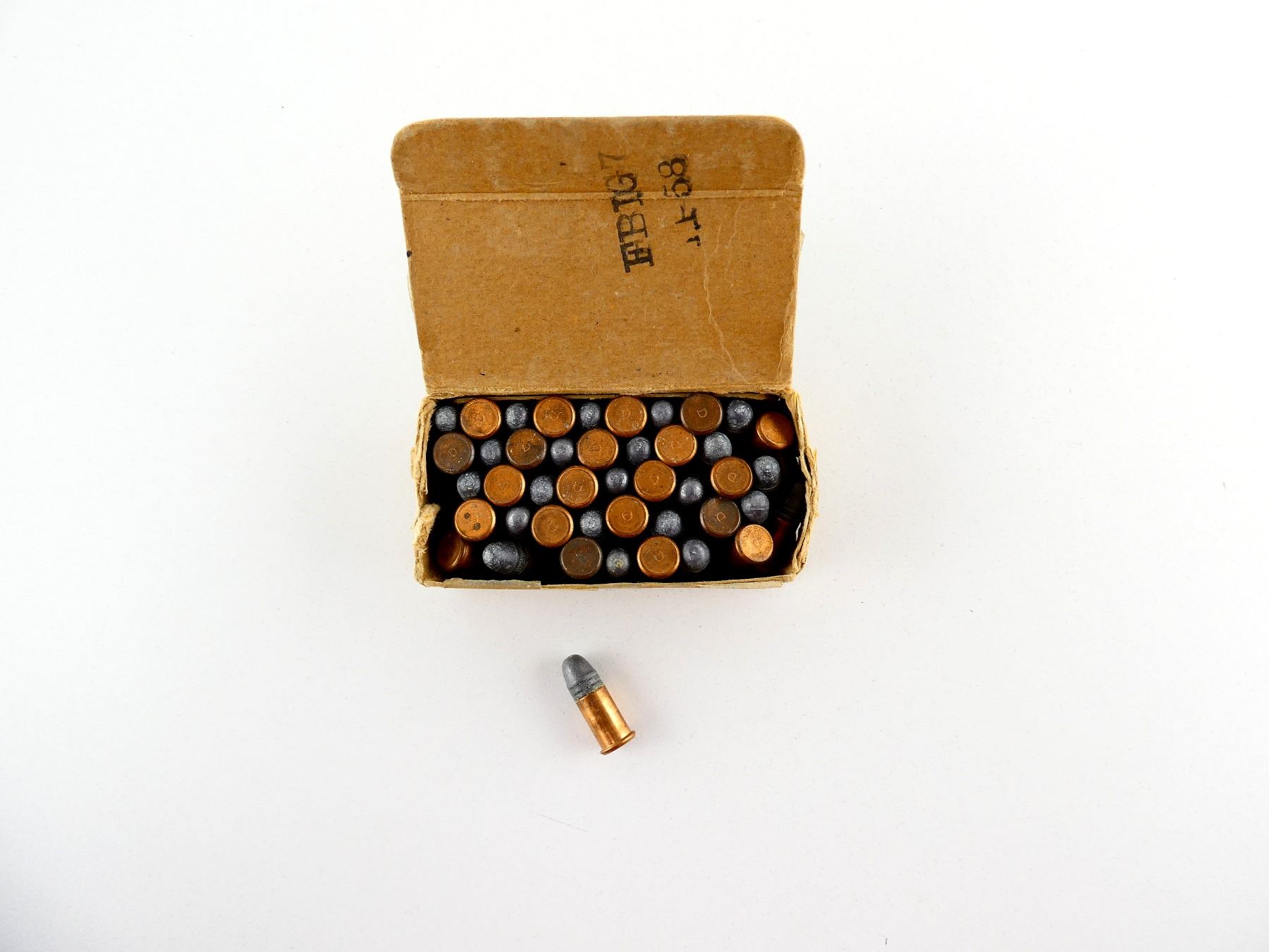 LOT INCLUDES; APPROX. (46) RNDS, 80 GRNS (STATED ON BOX NOT CONFIRMED), BULLET, GREASED, SMOKELESS , IN ORIGINAL COLLECTIBLE BOX, SHOWS SOME WEAR, SEE PHOTOS.