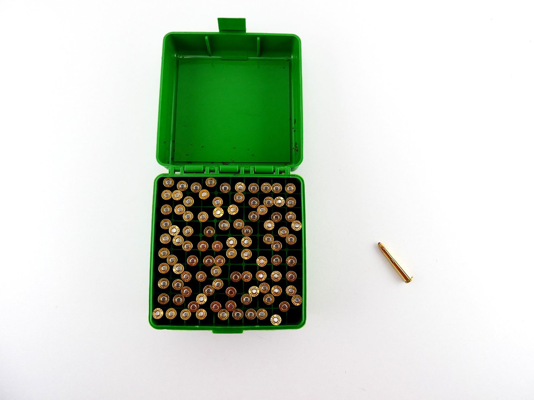 LOT INCLUDES; APPROX. (100) RNDS, SP, (1) MTM CASE-GARD RS-100 PLASTIC AMMO BOX.