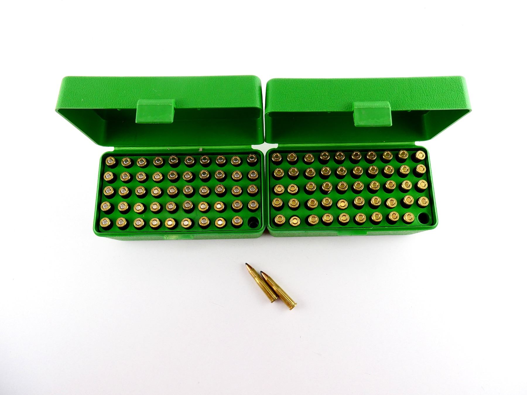 LOT INCLUDES; APPROX. (100) RNDS, (2) MTM CASE-GARD RS-50 PLASTIC AMMO BOXES.