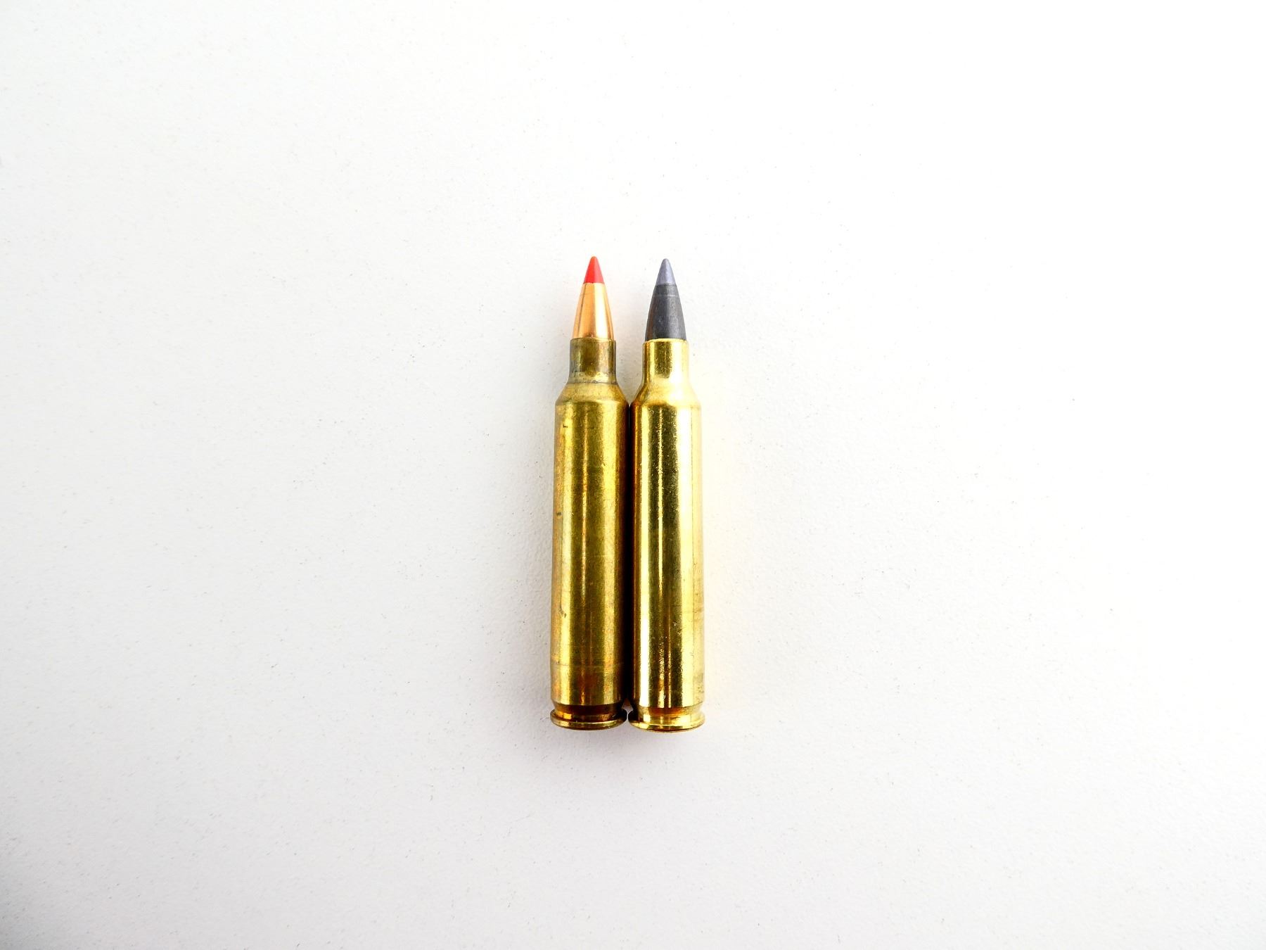 LOT INCLUDES; APPROX. (73) RNDS, CONSIGNOR STATES; "40 GRNS HORNADY V-MAX MOLY, 40 GRNS HORNADY V-MAX, 40 GRNS NOSLER, ETC.,", NOT CONFIRMED, (77) NON-PRIMED BRASS CASES, (2) CASE-GARD 50 PLASTIC AMMO BOX, (1) CASE-GARD 100 PLASTIC AMMO BOX.