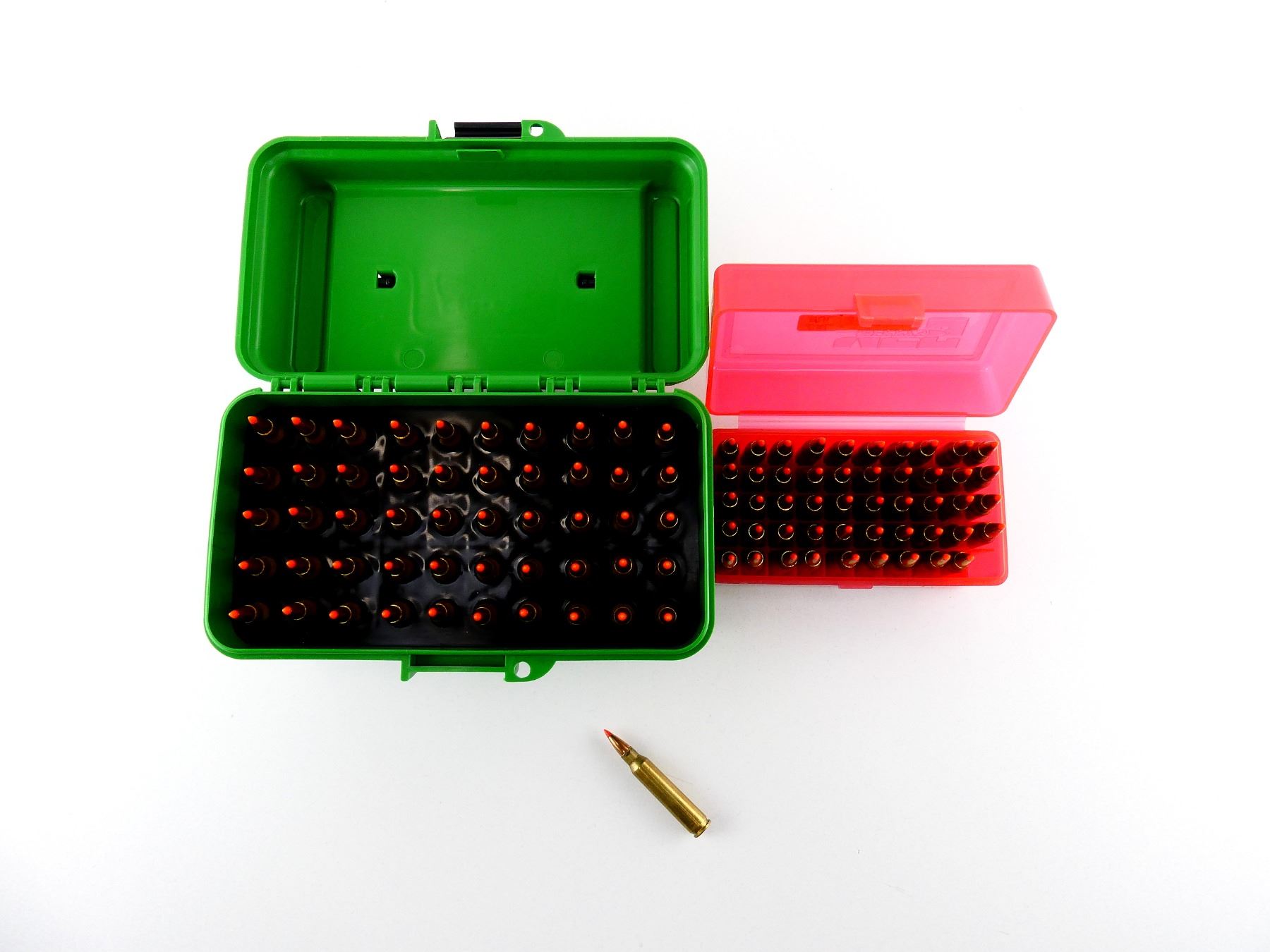 LOT INCLUDES; APPROX. (100) RNDS, CONSIGNOR STATES; "55 GRNS V-MAX", NOT CONFIRMED, (2) PLASTIC AMMO BOXES.