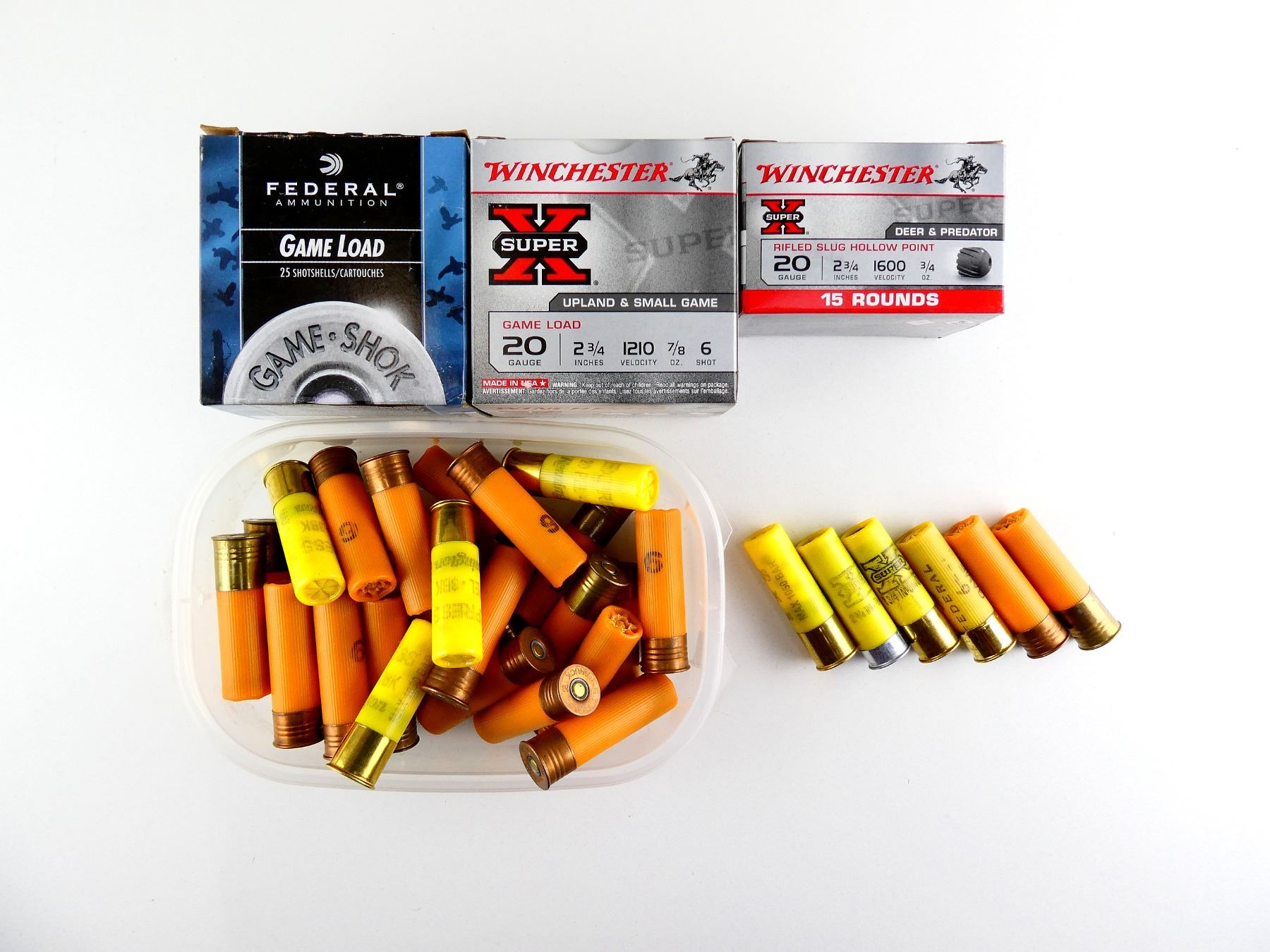 ASSORTED 20 GAUGE 2 3/4" SHOT SHELL AMMO LOT