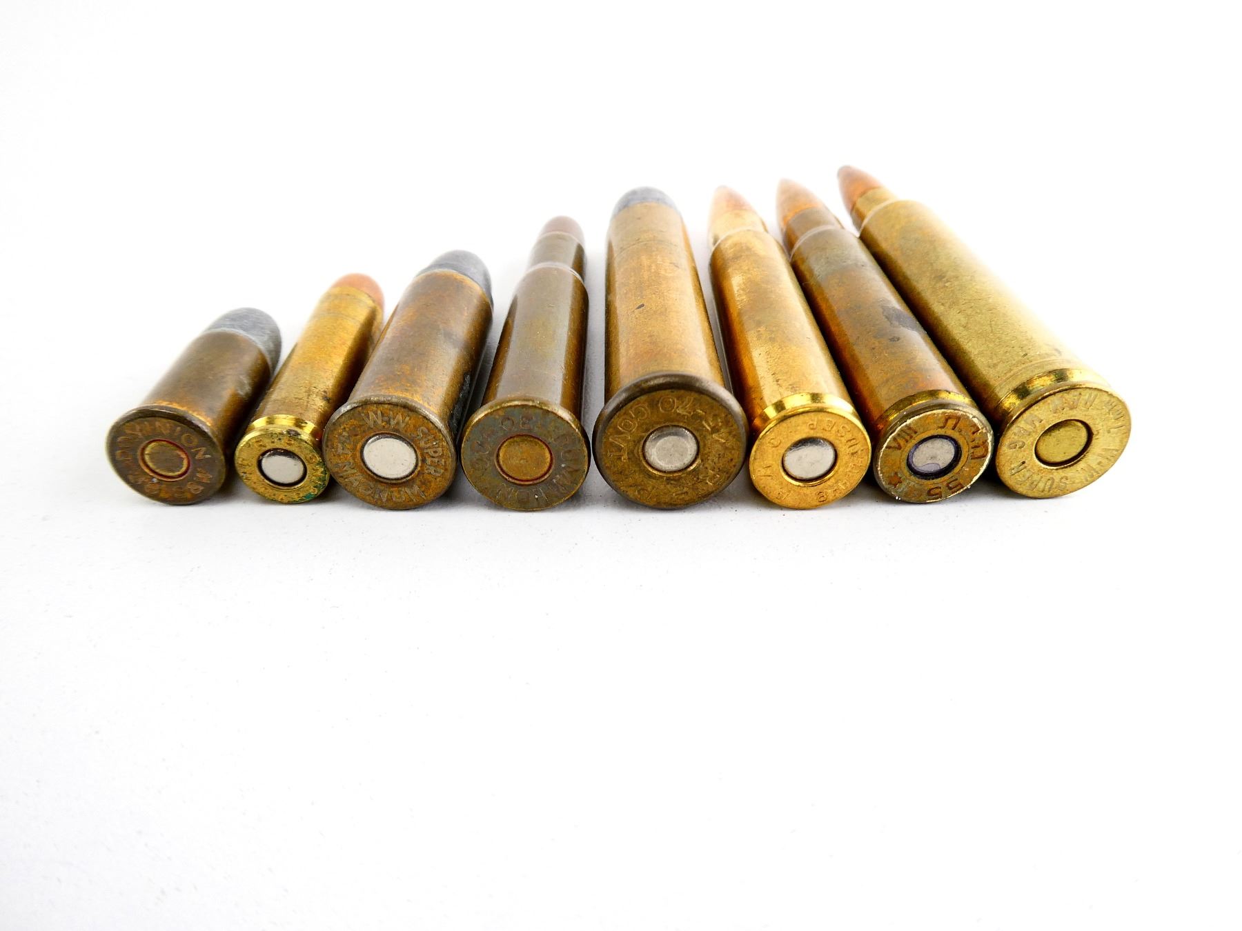 LOT INCLUDES; APPROX. (81) RNDS, VARIOUS CALIBERS INCLUDING; 8MM MAUSER, 7MM REM MAG, .45-70 GOVT, .30 CARBINE, ETC., (1) NON-PRIMED BRASS CASE, (6) STRIPPER CLIPS, CONTAINS SOME MILITARY RNDS.