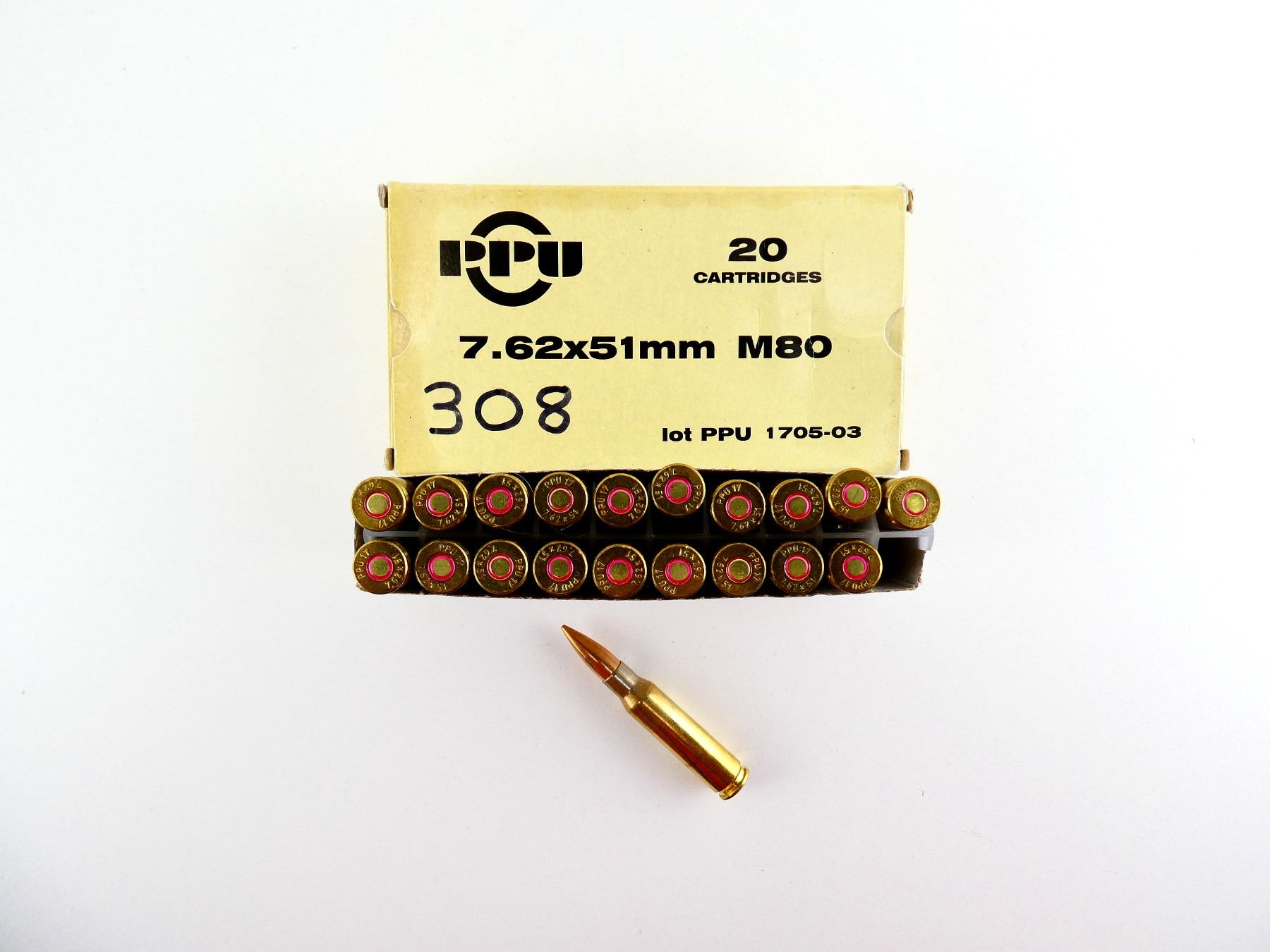 PPU 7.62X51MM M80 AMMO LOT LOT INCLUDES; APPROX. (20) RNDS, FMJ.