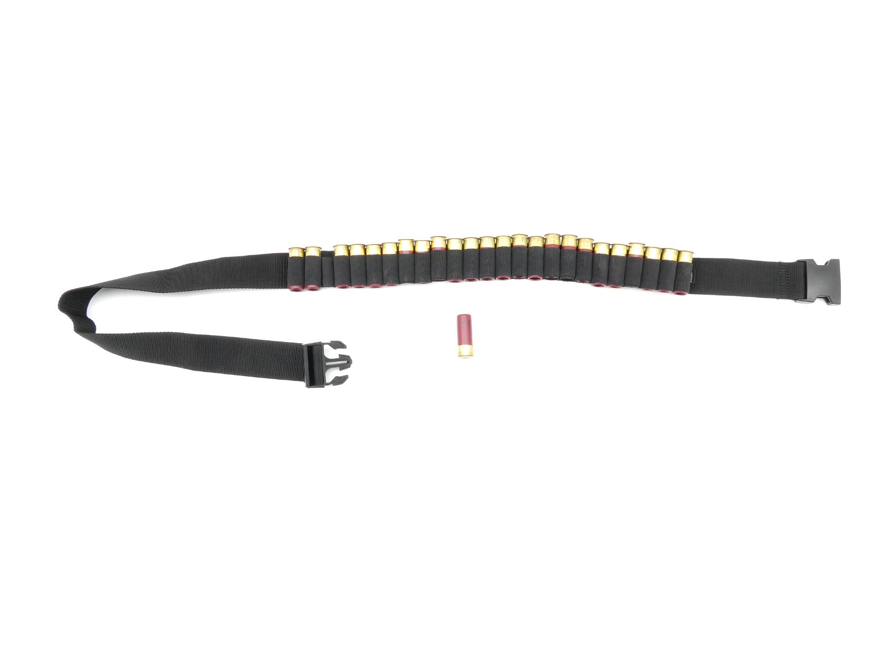 LOT INCLUDES; APPROX. (25) RNDS, SHOT SIZE #RIFLED SLUG, (1) BLACK SHOT SHELL AMMO BELT, APPROX. OVERALL LENGTH 54", SEE PHOTOS.