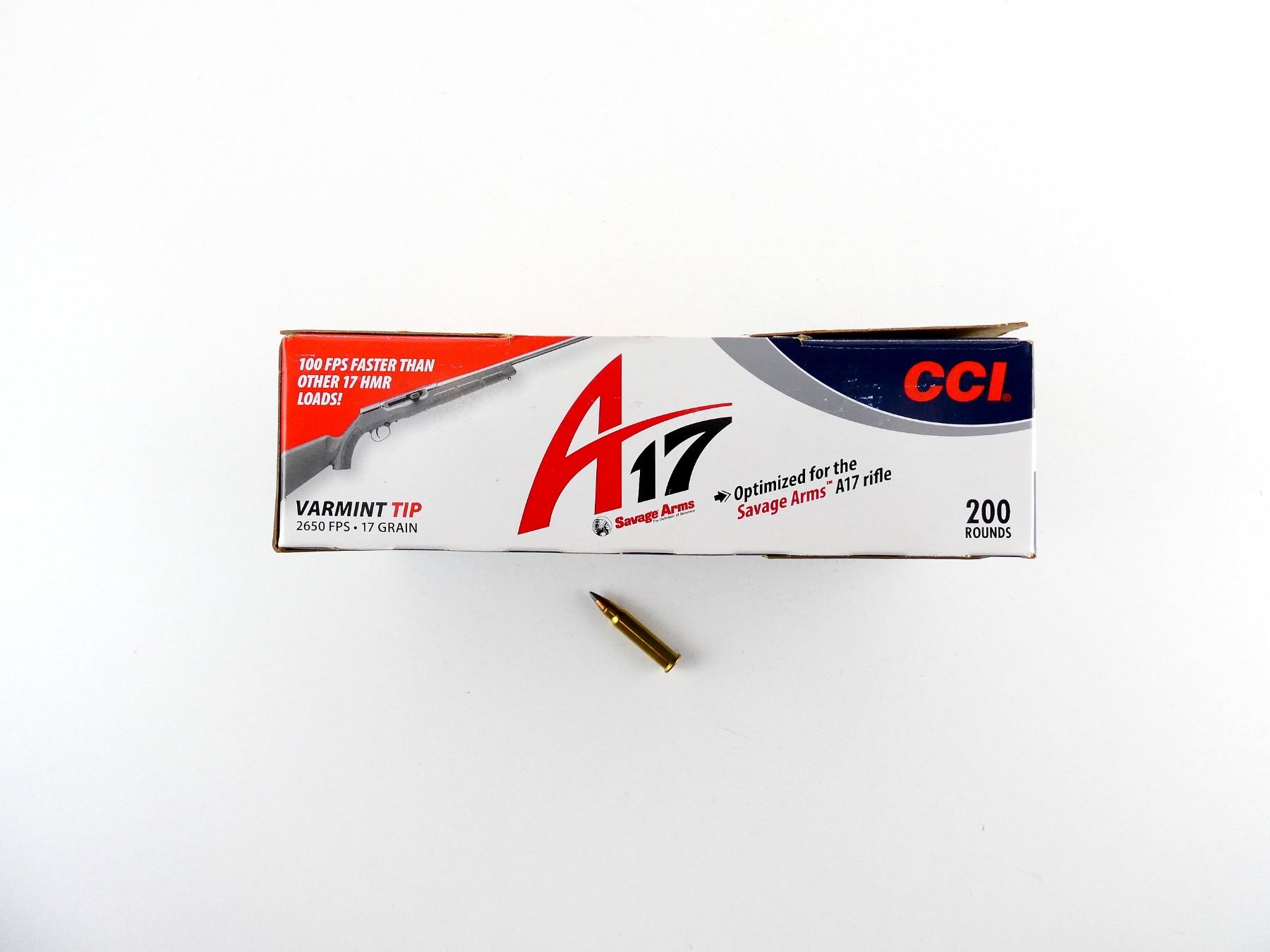 LOT INCLUDES; APPROX. (200) RNDS, 17 GRNS (STATED ON BOX NOT CONFIRMED), VARMINT TIP.