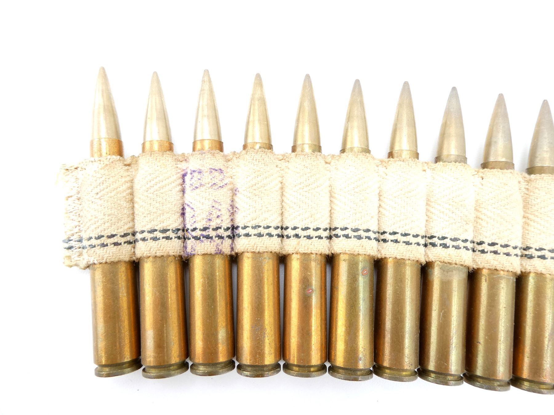LOT INCLUDES; APPROX. (250) RNDS, FMJ, ON BROWNING 1919 MACHINE GUN CLOTH BELT, APPROX. OVERALL LENGTH 136", SEE PHOTOS.