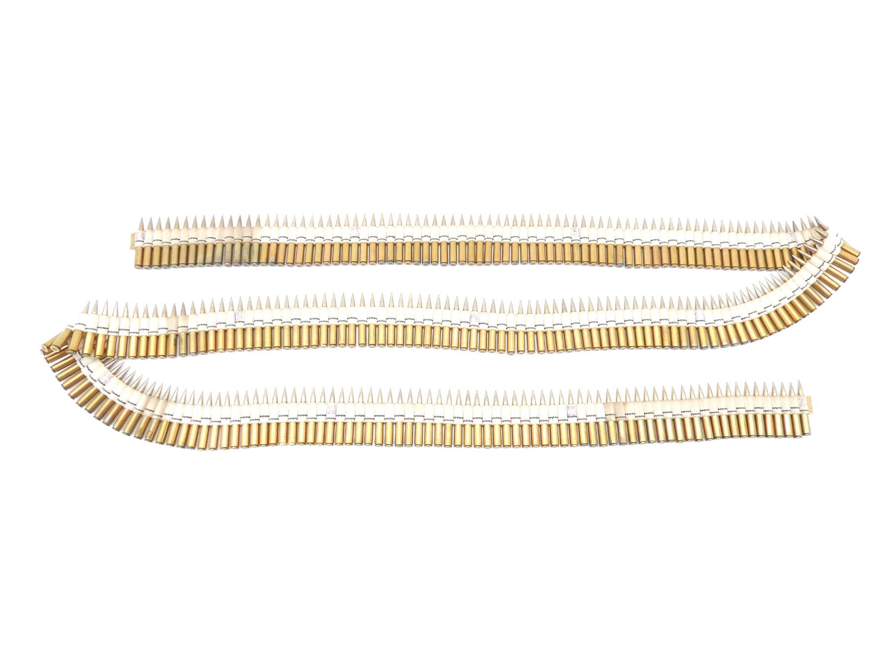 LOT INCLUDES; APPROX. (249) RNDS, FMJ, ON BROWNING 1919 MACHINE GUN CLOTH BELT, APPROX. OVERALL LENGTH 139", SEE PHOTOS.