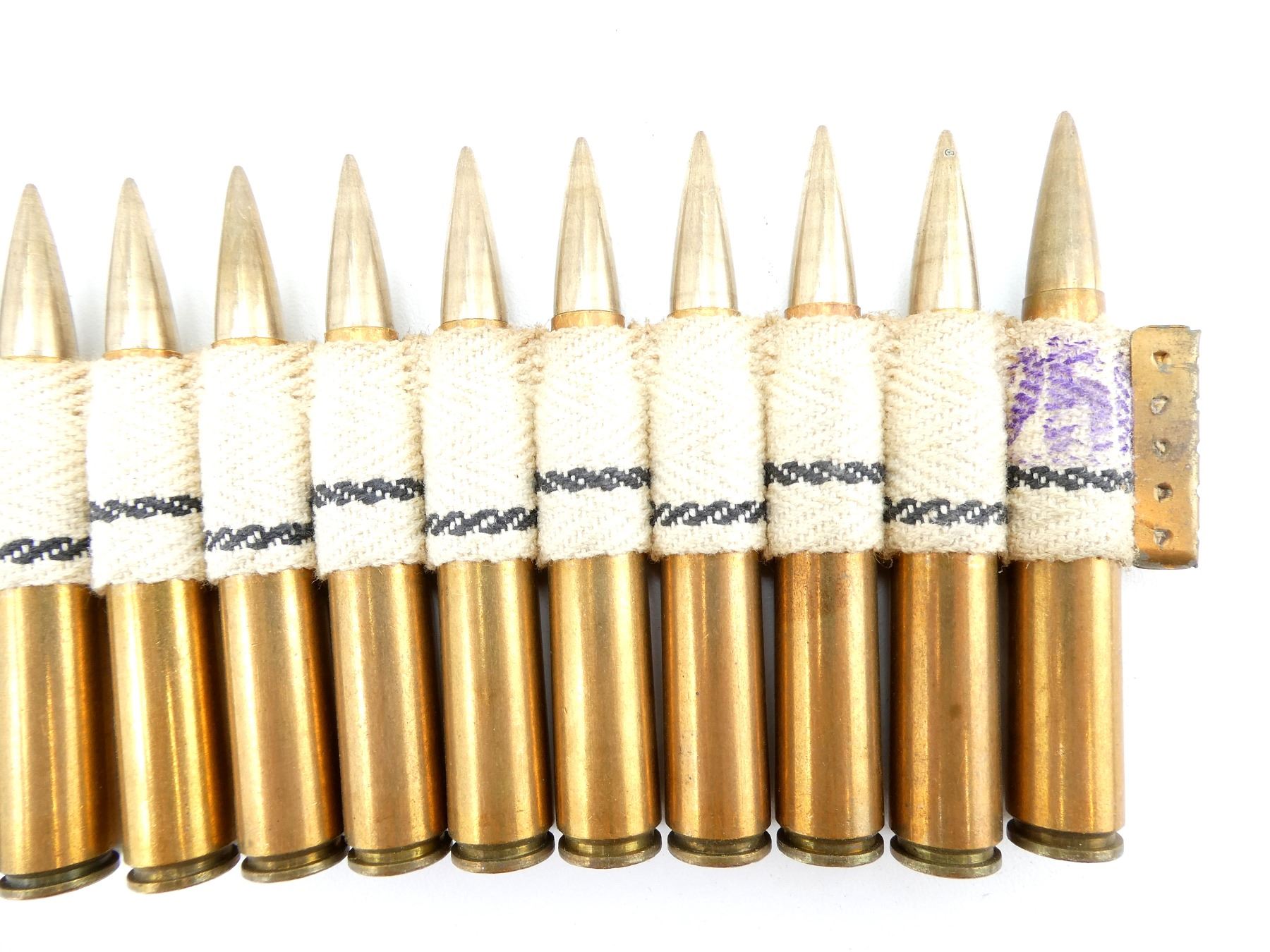 LOT INCLUDES; APPROX. (250) RNDS, FMJ, ON BROWNING 1919 MACHINE GUN CLOTH BELT, APPROX. OVERALL LENGTH 139", SEE PHOTOS.