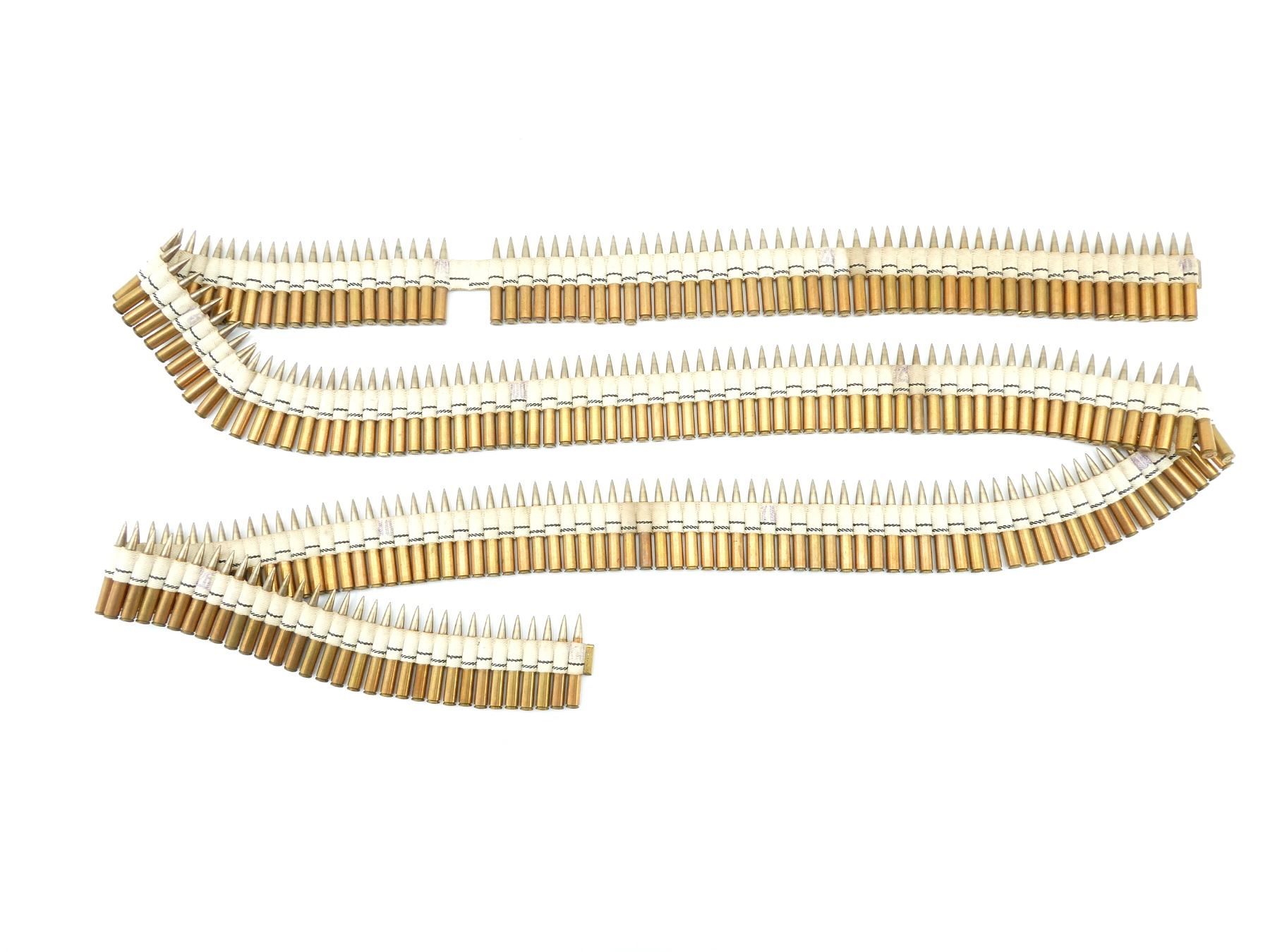 LOT INCLUDES; APPROX. (248) RNDS, FMJ, ON BROWNING 1919 MACHINE GUN CLOTH BELT, APPROX. OVERALL LENGTH 143", SEE PHOTOS.