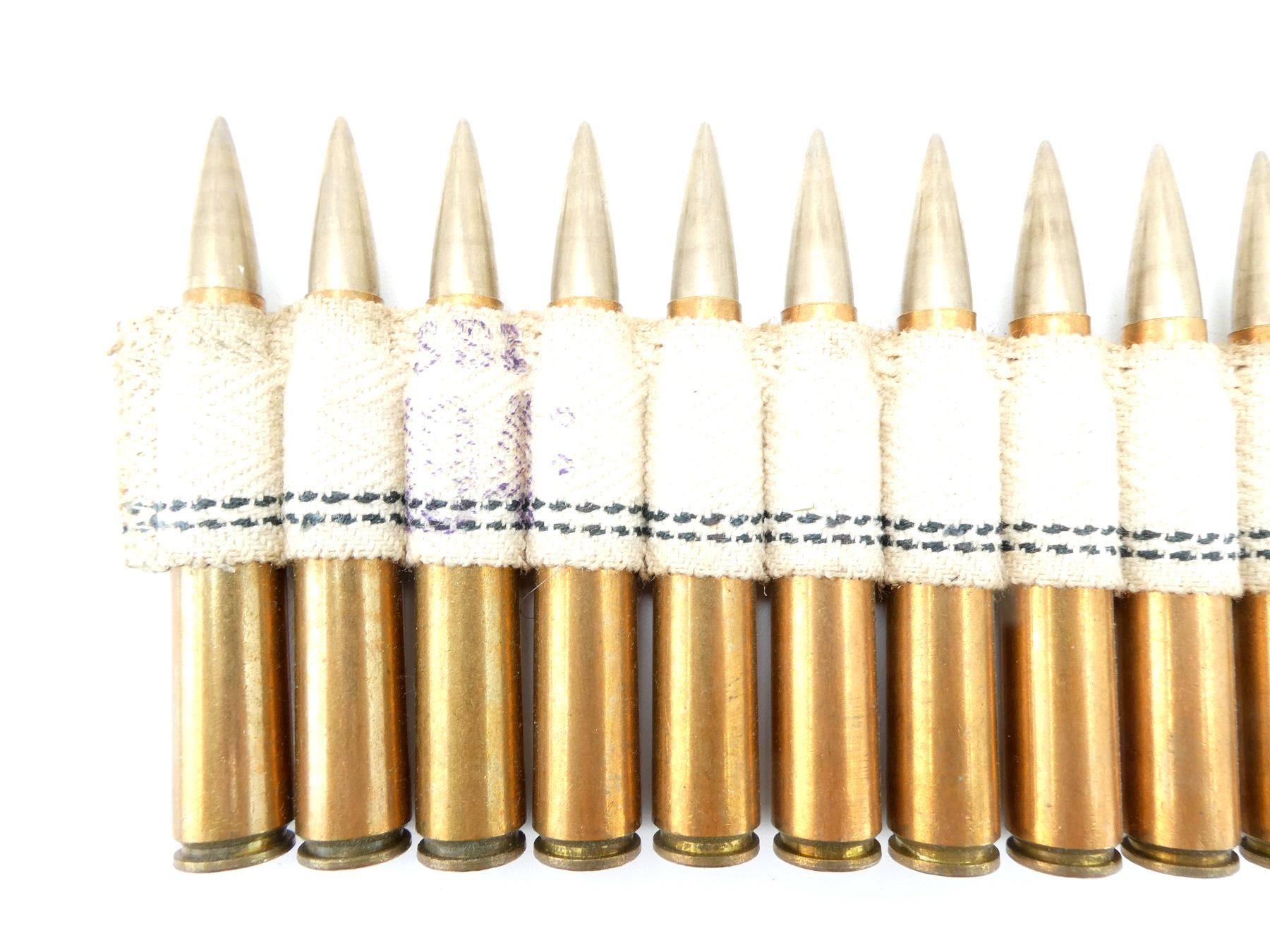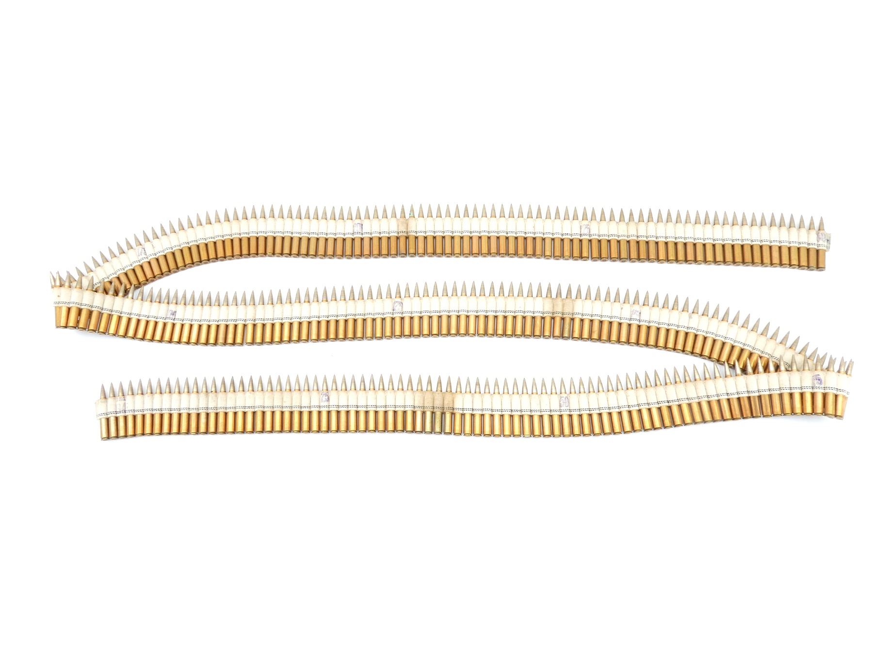 LOT INCLUDES; APPROX. (250) RNDS, FMJ, ON BROWNING 1919 MACHINE GUN CLOTH BELT, APPROX. OVERALL LENGTH 137", SEE PHOTOS.