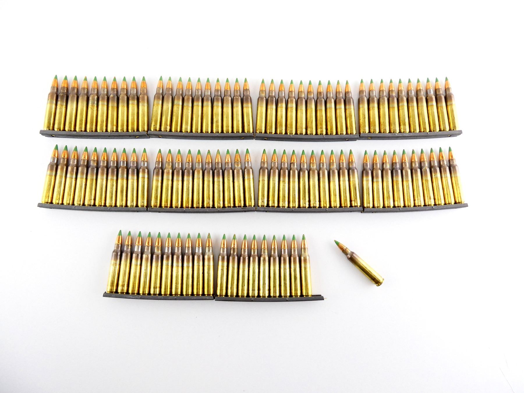 LOT INCLUDES; APPROX. (100) RNDS, GREEN TIP SS 109, (10) STRIPPER CLIPS.