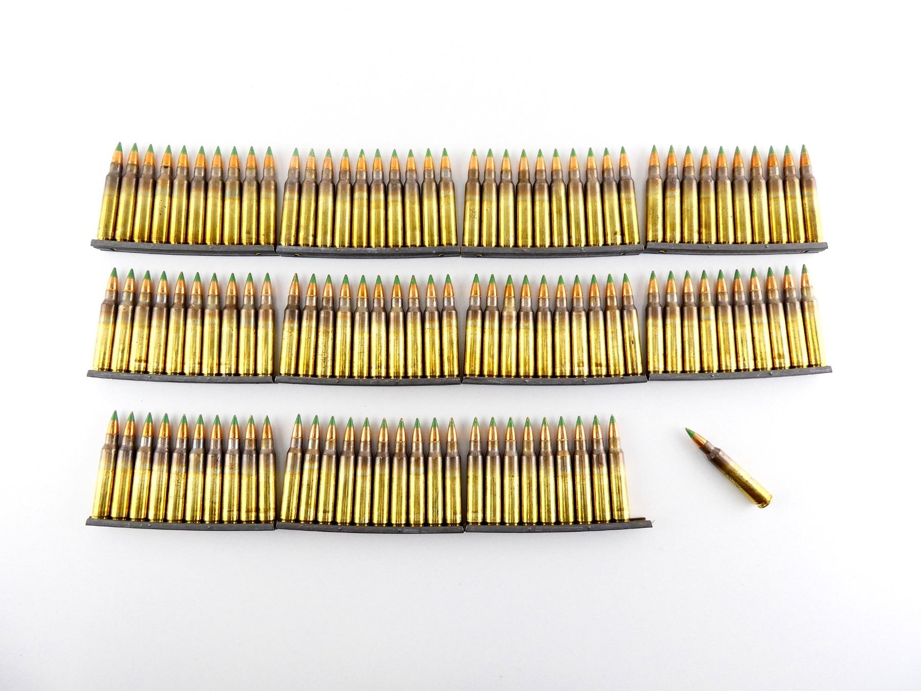 LOT INCLUDES; APPROX. (110) RNDS, GREEN TIP SS 109, (11) STRIPPER CLIPS.