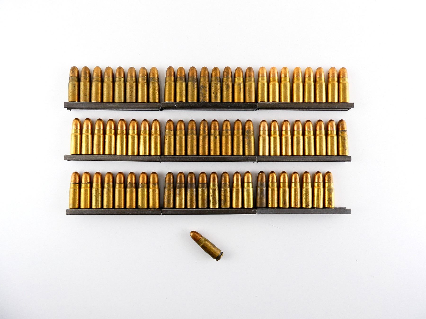 LOT INCLUDES; APPROX. (72) RNDS, FMJ, (9) STRIPPER CLIPS.