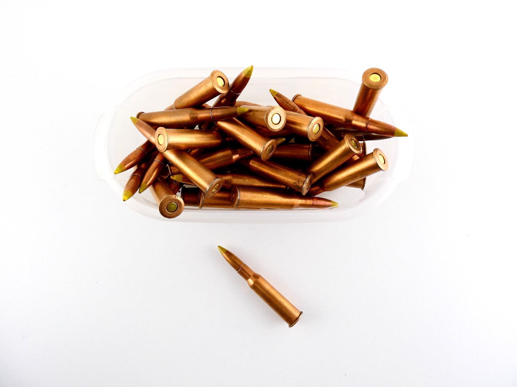 LOT INCLUDES; APPROX. (39) RNDS, FMJ, YELLOW TIP, COPPER WASHED.