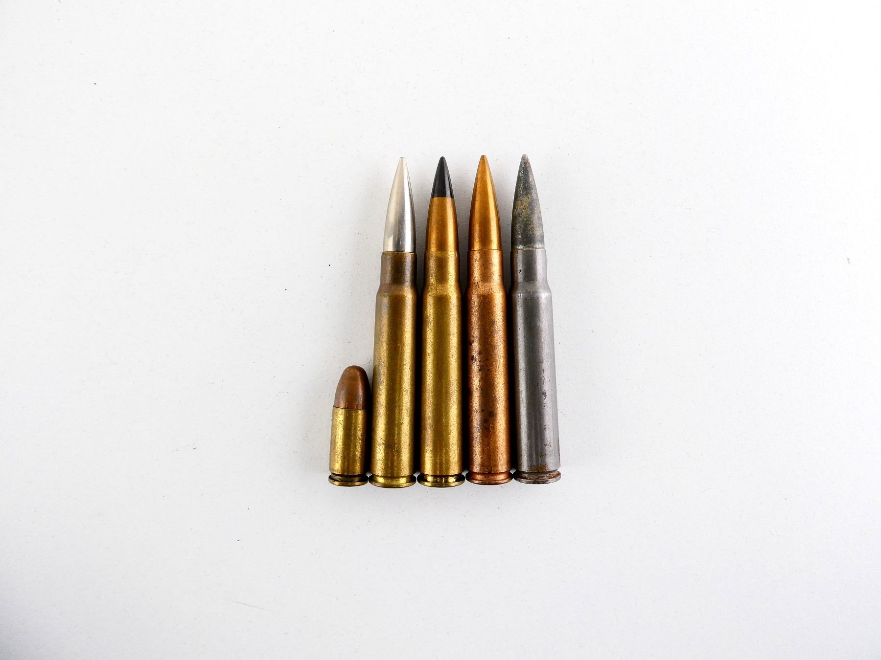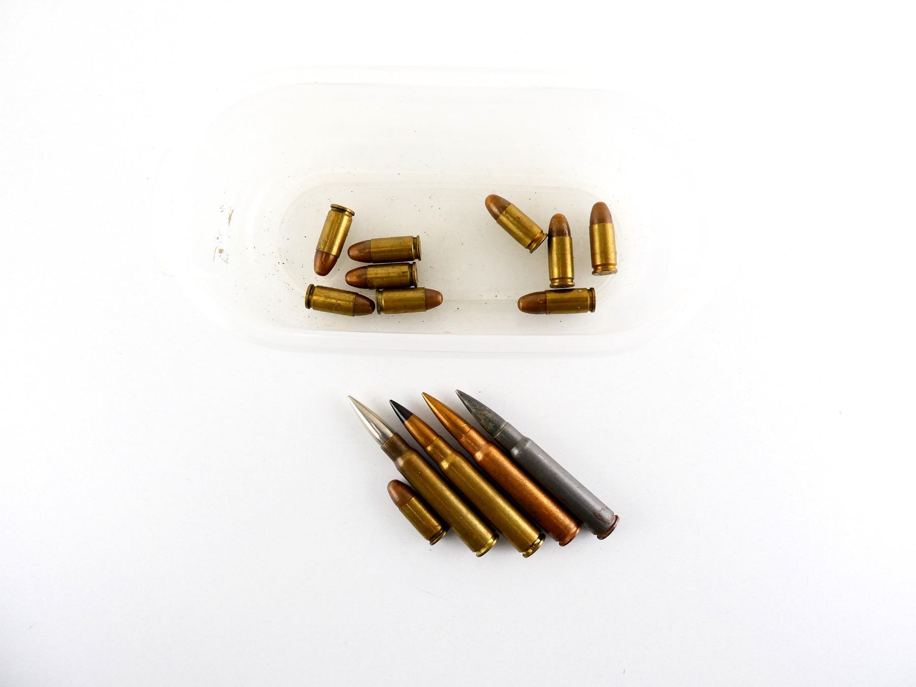 LOT INCLUDES; APPROX. (14) RNDS, FMJ, AR, AR TRACERS, ETC., ALL 9MM RNDS HAVE BEEN STRUCK.