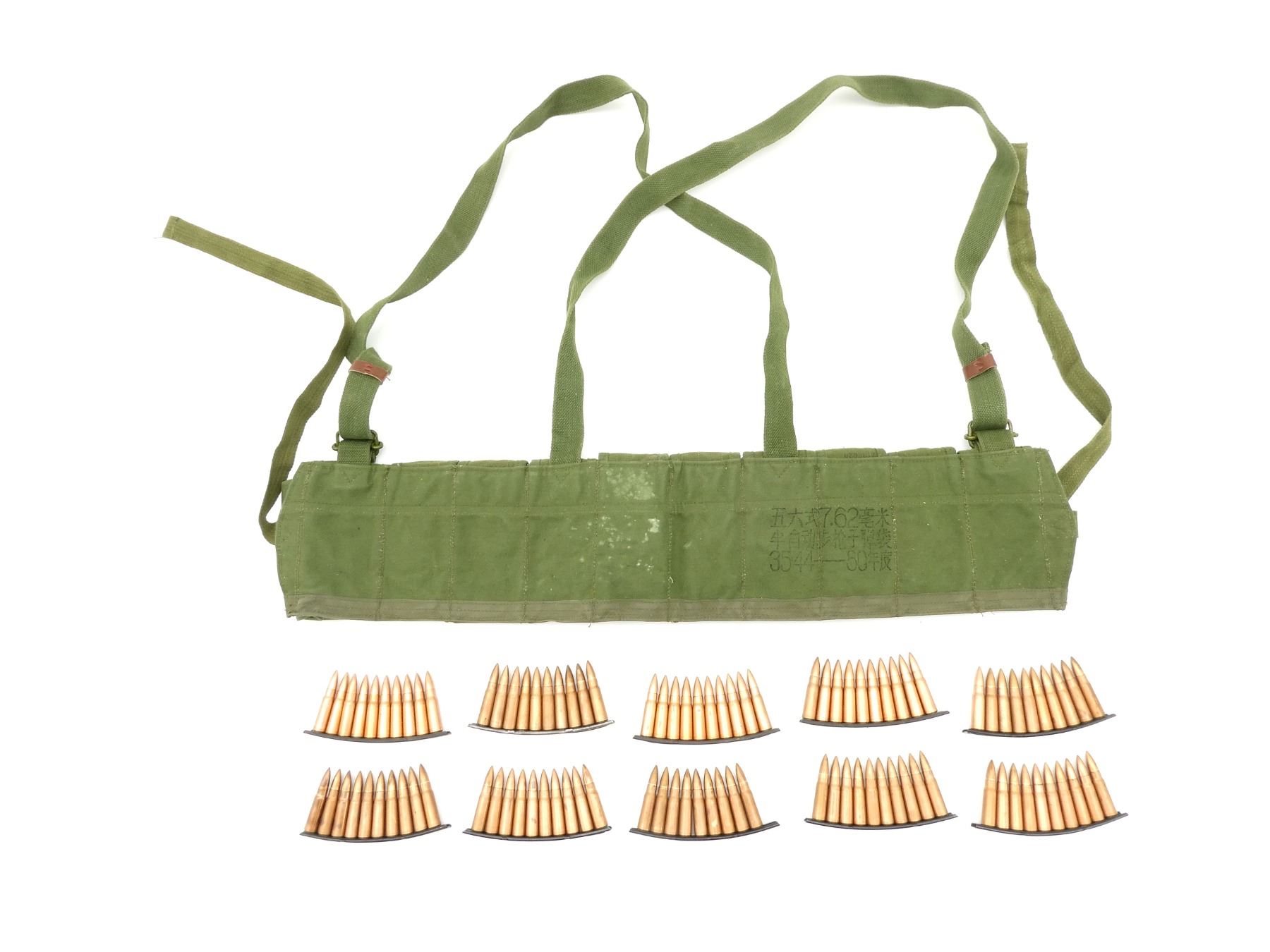 UNKNOWN MILITARY 7.62X39MM AMMO AND CHINESE SKS BANDOLIER LOT