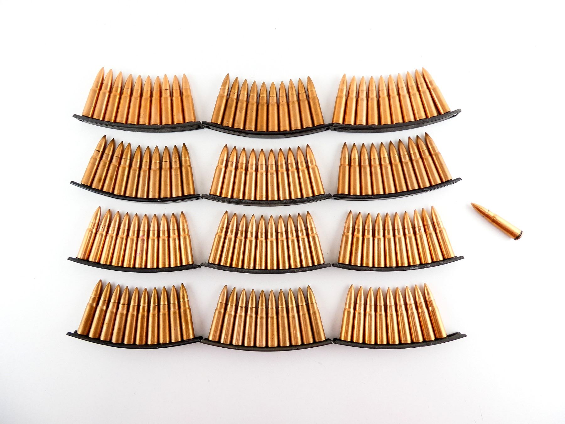LOT INCLUDES; APPROX. (120) RNDS, FMJ, COPPER WASHED, (12) STRIPPER CLIPS.