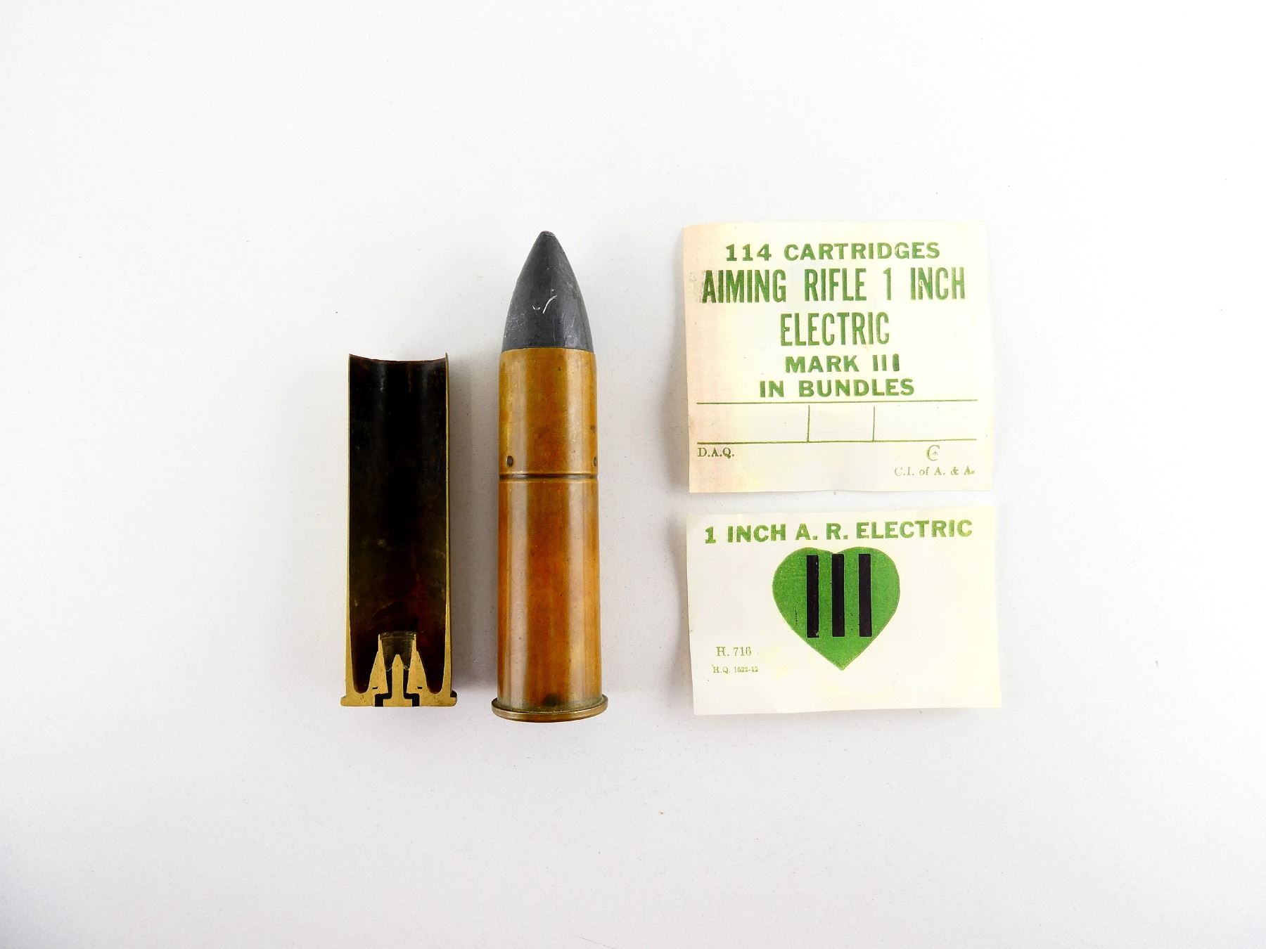 Lot 12153 CANADIAN MILITARY 1" AIMING RIFLE RND AND CUT AWAY BRASS CASE LOT