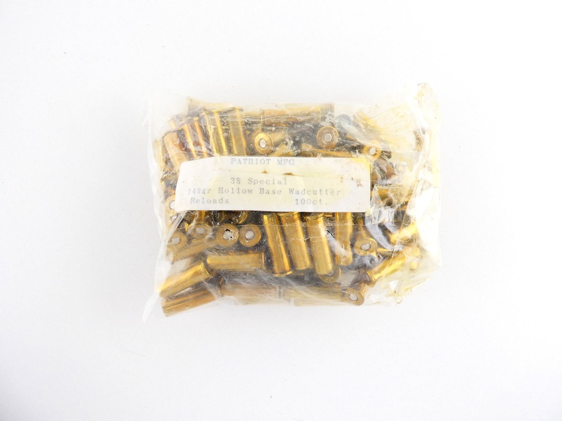 LOT INCLUDES; APPROX. (100) RNDS, CONSIGNOR STATES; "148 GRNS HOLLOW BASE WADCUTTER", FACTORY RELOADED.
