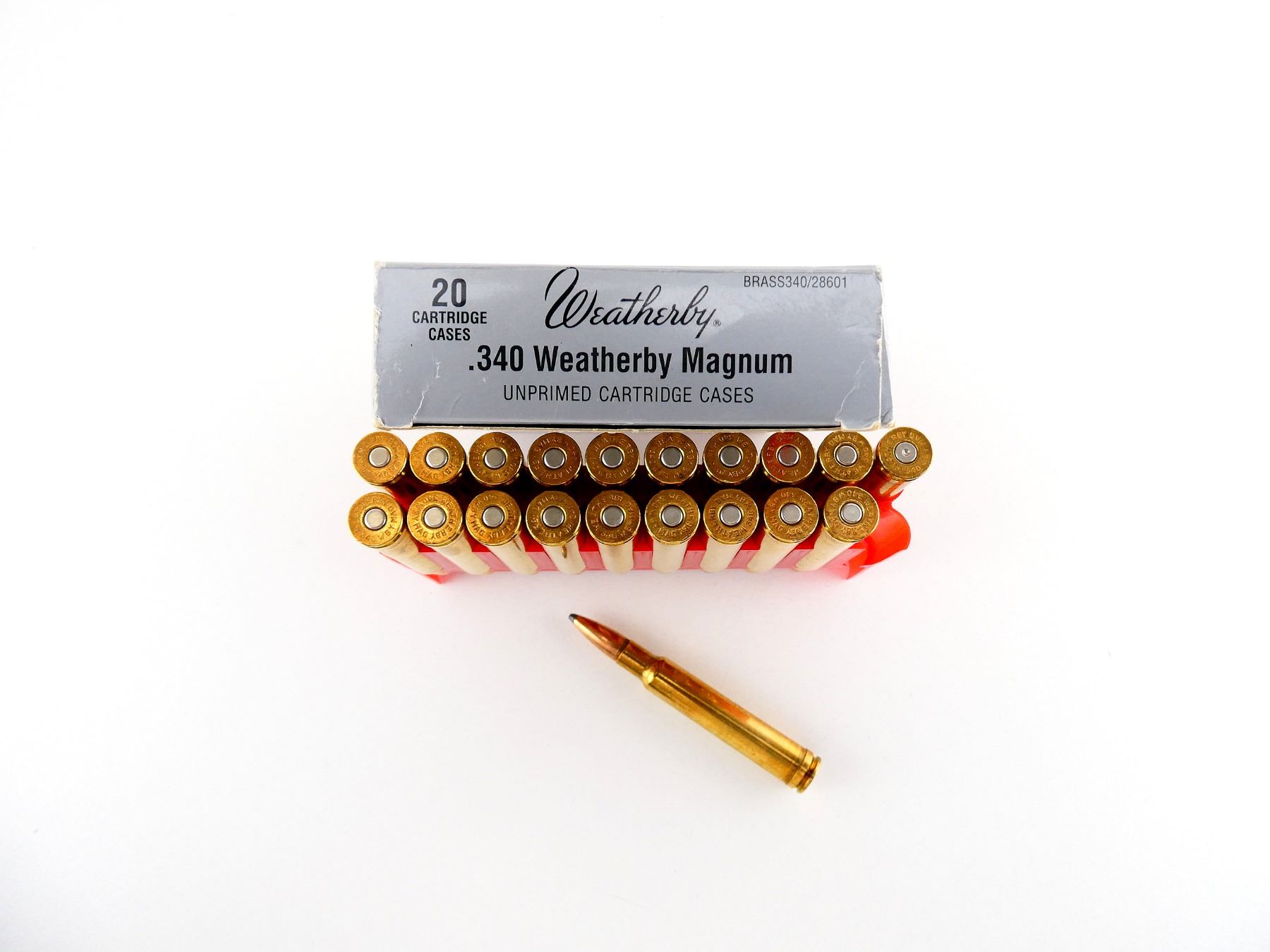 WEATHERBY .340 WEATHERBY MAGNUM AMMO AND NON-PRIMED BRASS CASE LOT