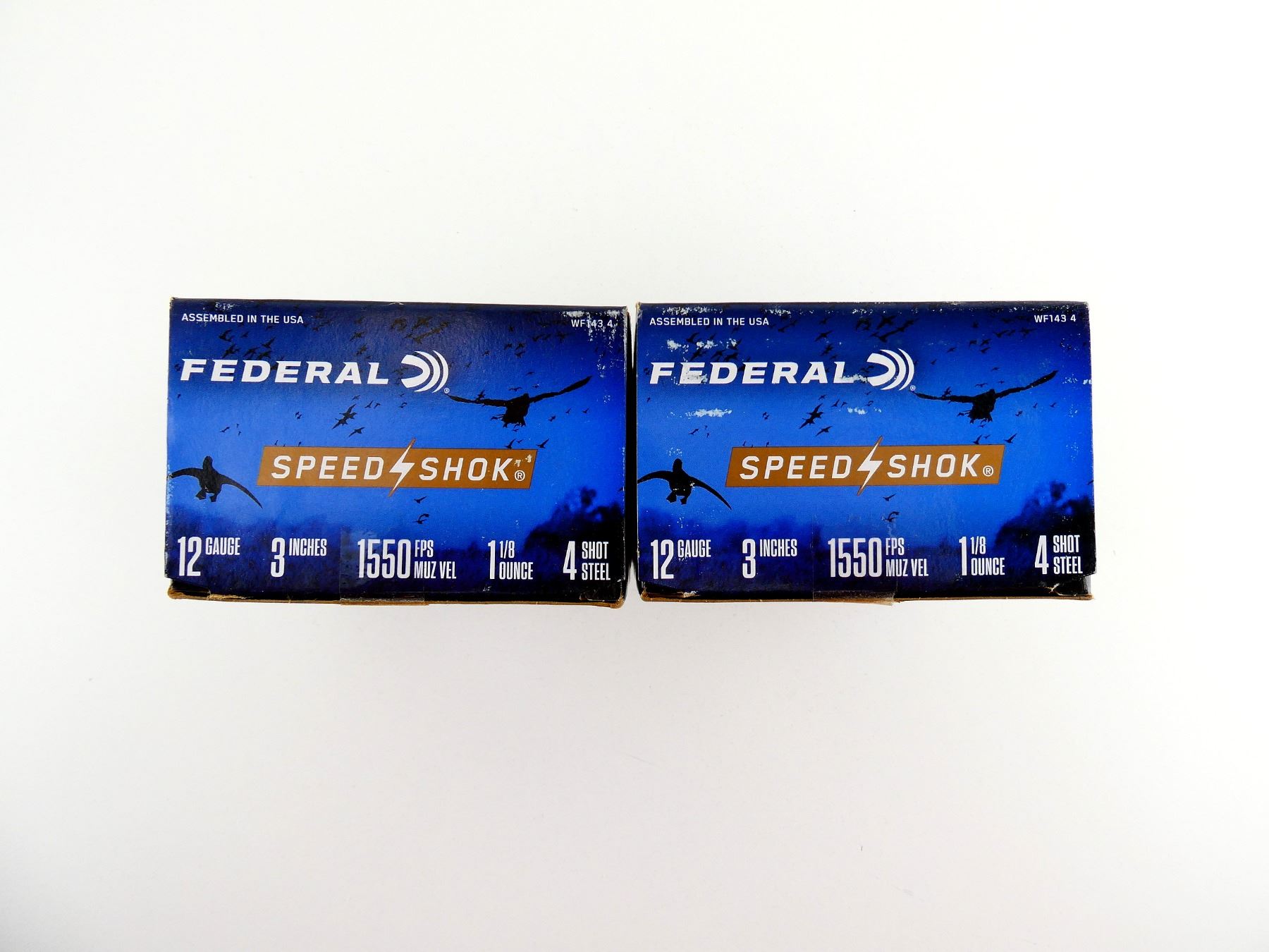 Lot 12424 FEDERAL SPEED SHOK 12 GAUGE 3" STEEL SHOT SHELL AMMO LOT