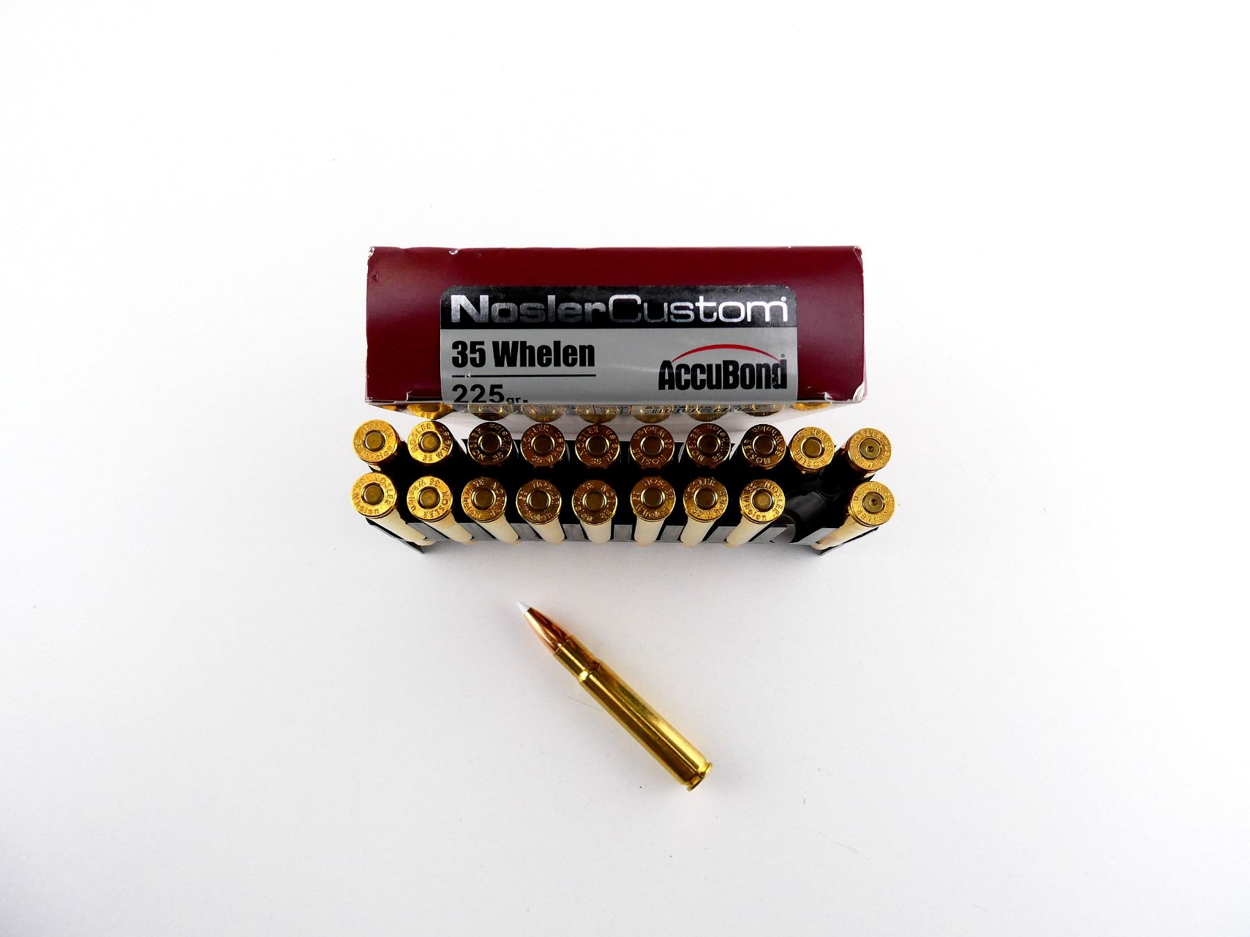 Lot 12796 NOSLER CUSTOM .35 WHELEN AMMO AND NON-PRIMED BRASS CASES LOT