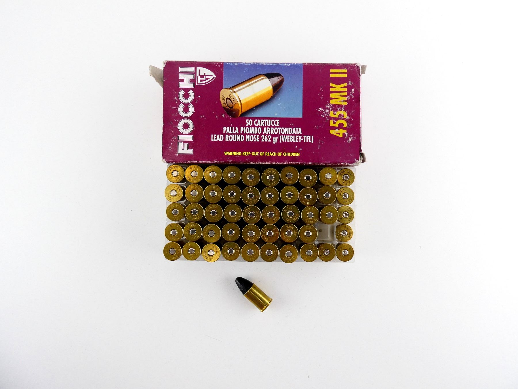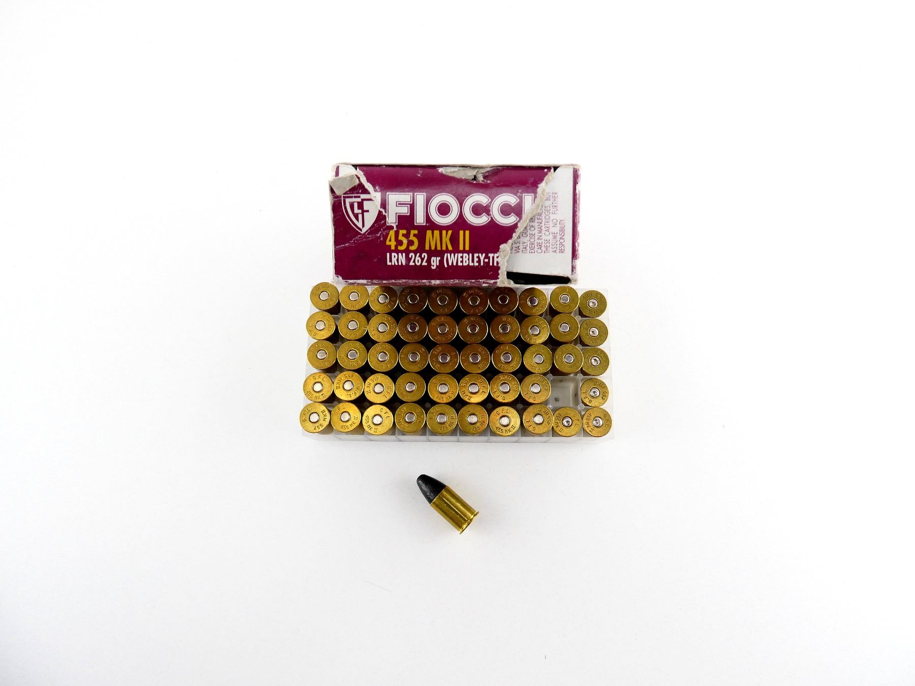 FIOCCHI .455 MK II (WEBLEY-TFL) AMMO AND NON-PRIMED BRASS CASES LOT