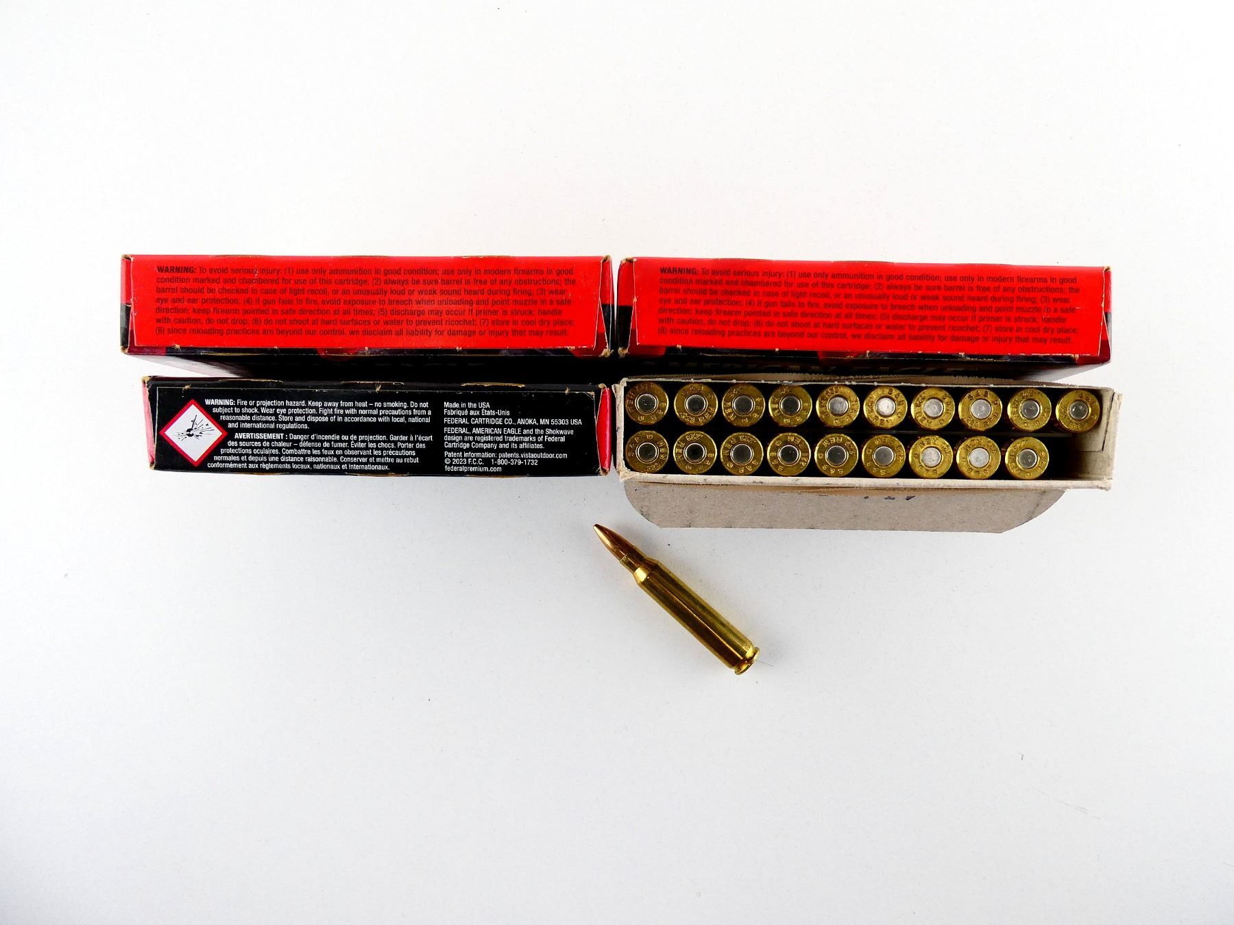 LOT INCLUDES; APPROX. (80) RNDS, 55 GRNS (STATED ON BOXES NOT CONFIRMED), FMJ, (3) UNOPENED.