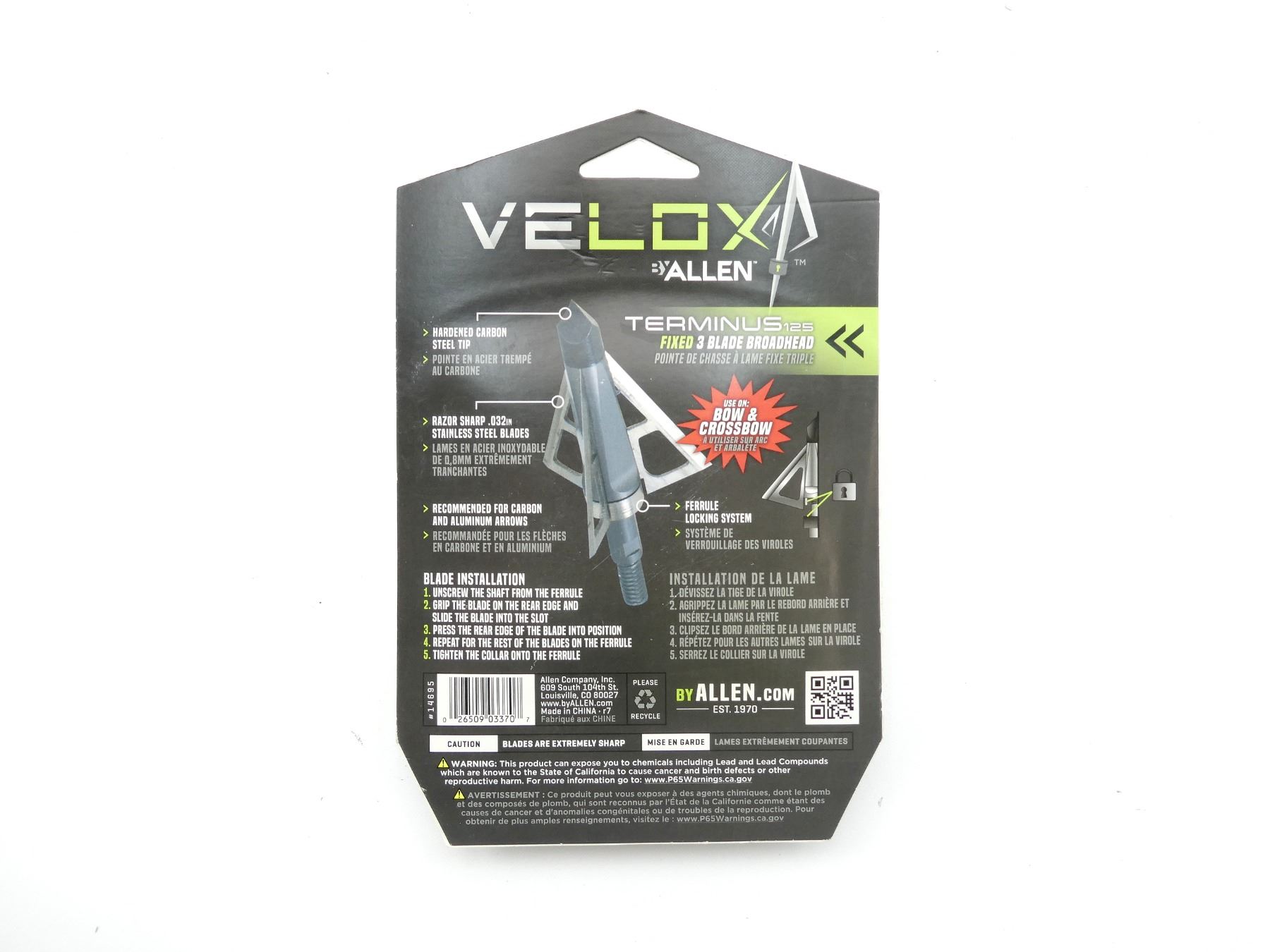 Lot 36014 NEW VELOX ALLEN TERMINUS FIXED 3 BLADE BROADHEAD LOT