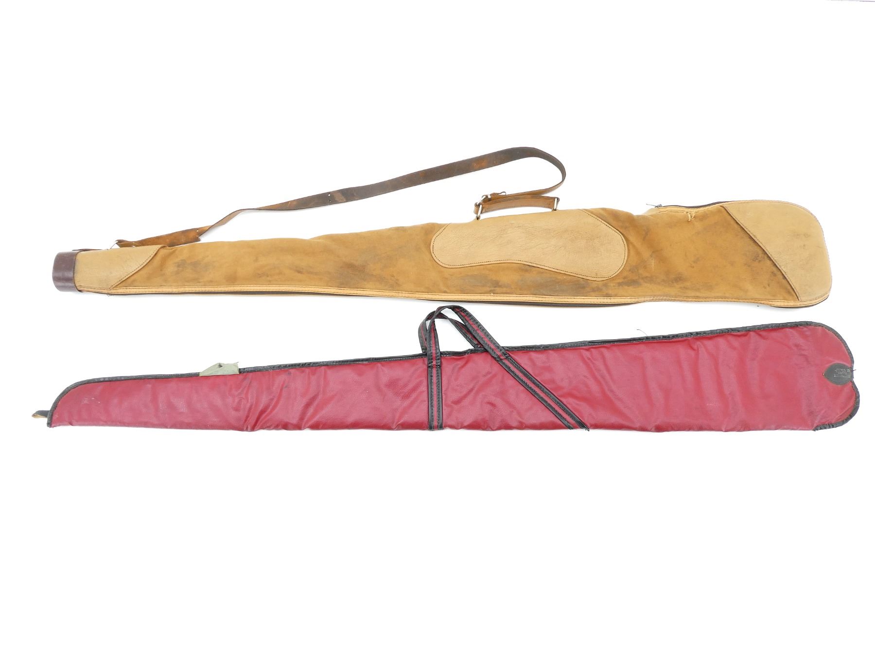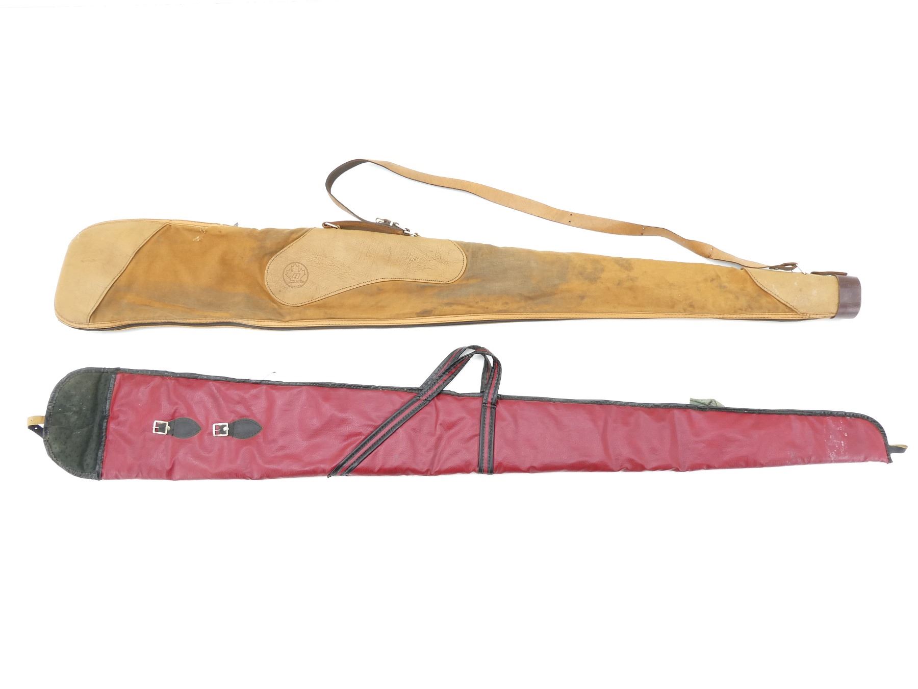 LOT INCLUDES; (2) SOFT PADDED GUN CASES, (1) ZIPPERED, CARRY HANDLE, SHOULDER STRAP, (1) SLIDE IN, CARRY HANDLES, STRAP & BUCKEL, SHOWS WEAR AND TEAR FROM USAGE, SEE PHOTOS.